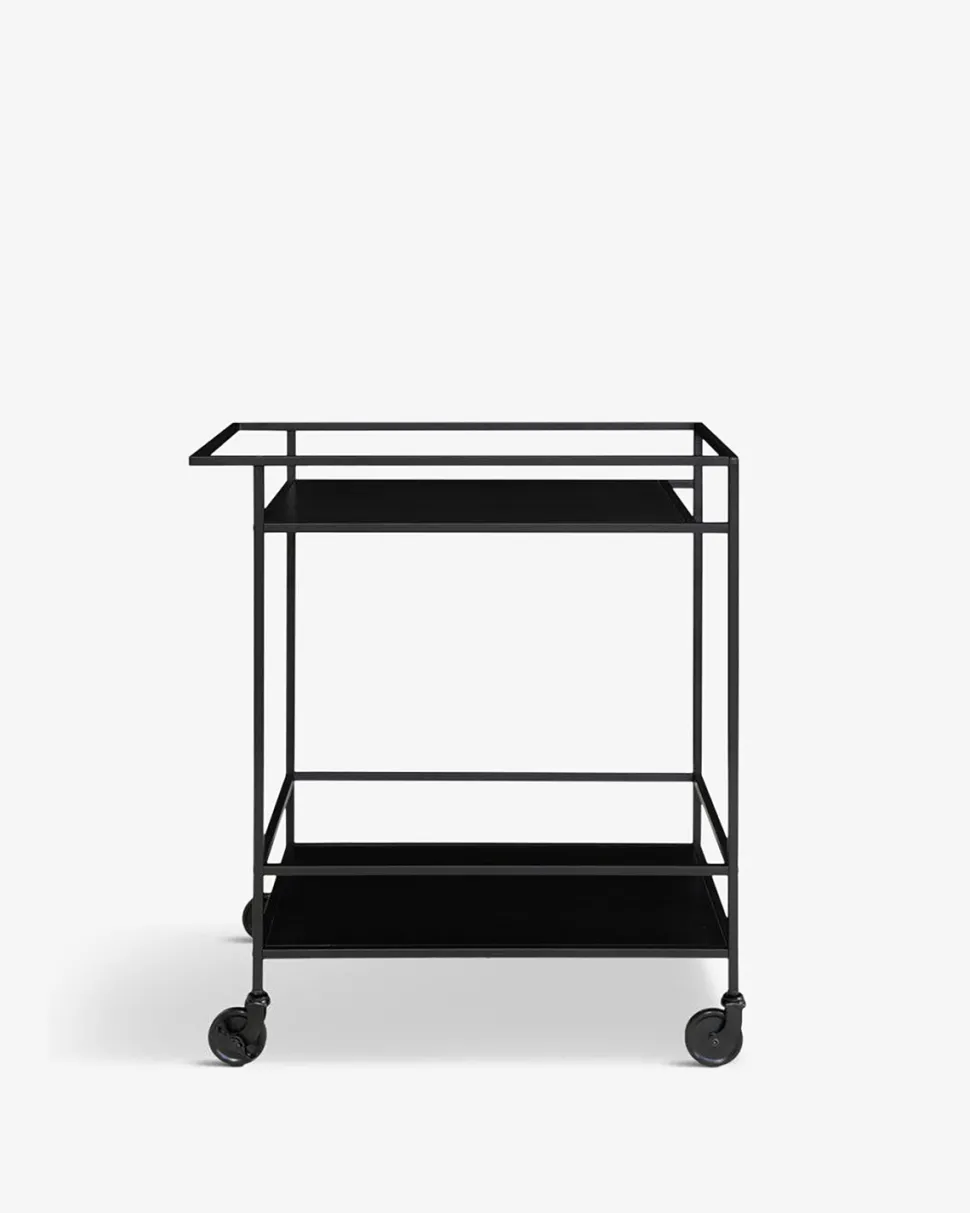 Barvogn udført i et enkelt og stilfuldt design af sortlakeret metal. Den skaber et elegant og stilrent udtryk.