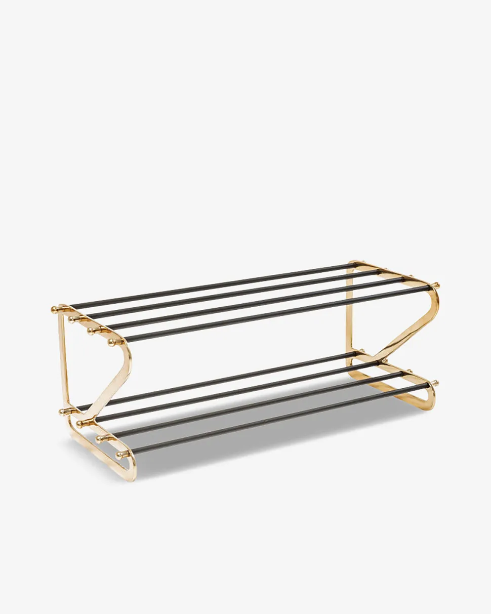 Dekorativ Walk skoreol i sort og messing med 2 hylder. Der er plads til 6 par sko i alt.