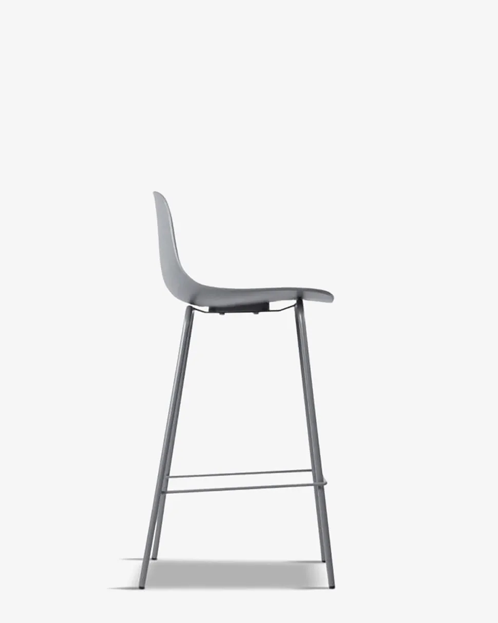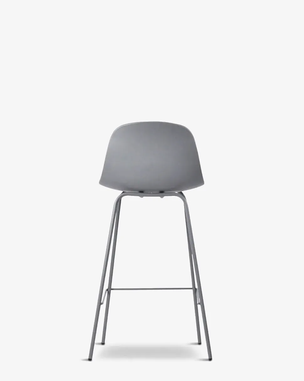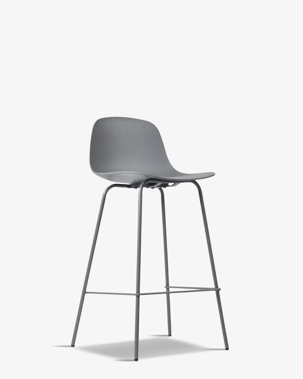 Whitby barstolen findes i 5 trendy farver, her vist i grå, med matchende grå metalben.