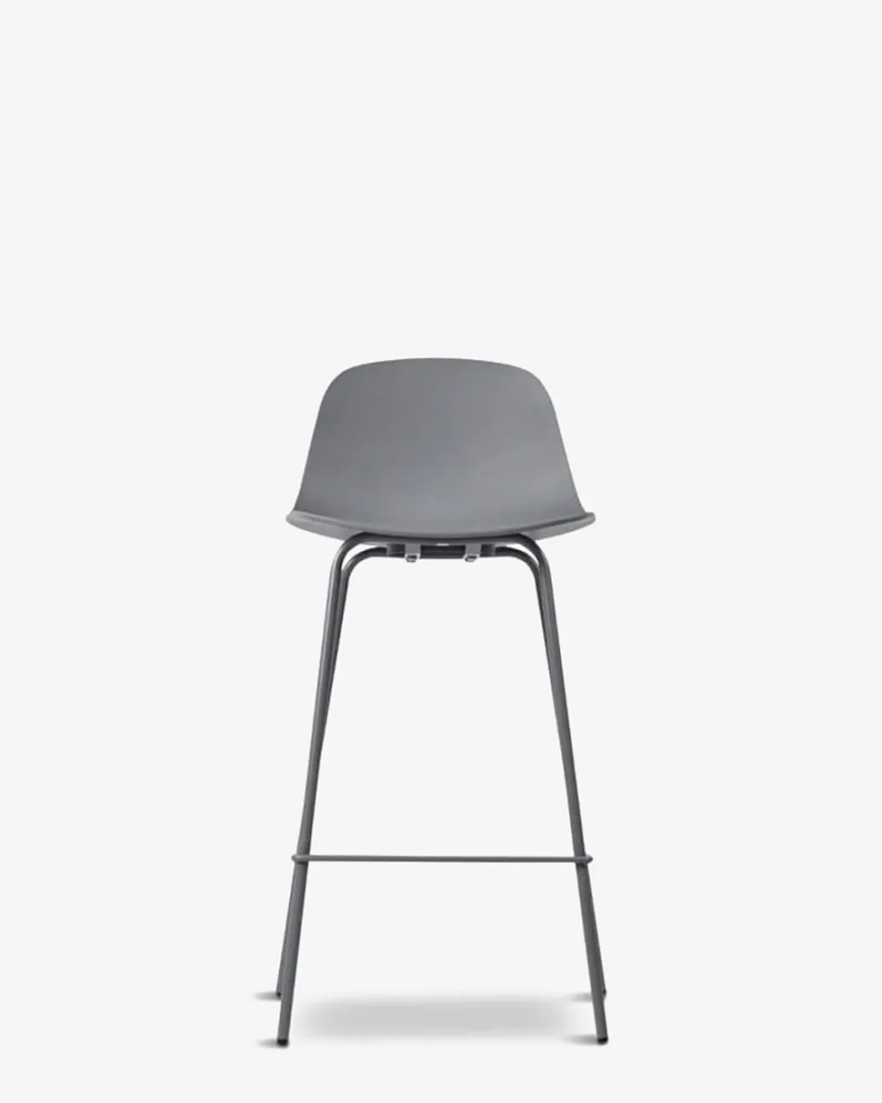 Whitby barstolen findes i 5 moderne farver, her vist i grå, med matchende grå metal ben.