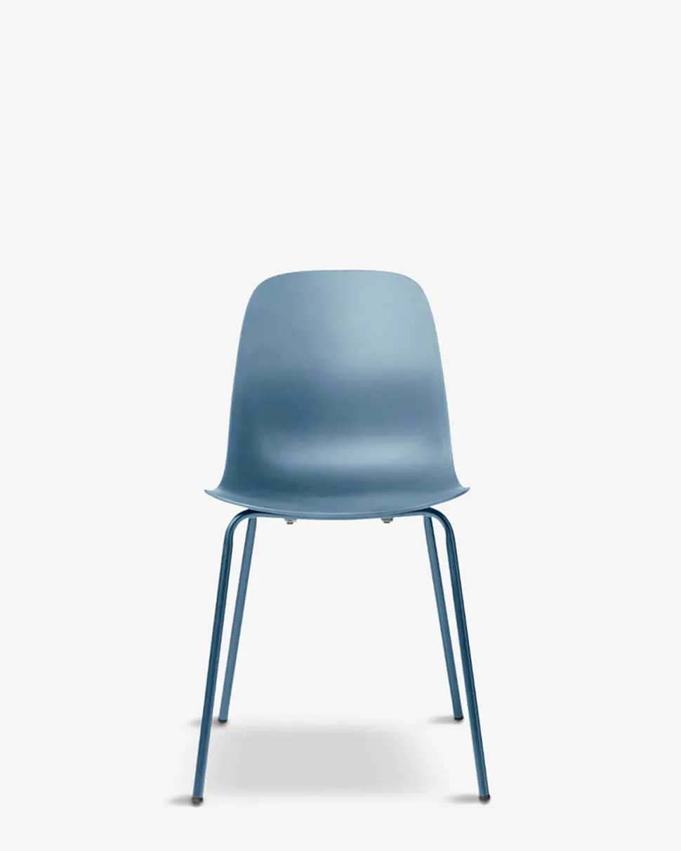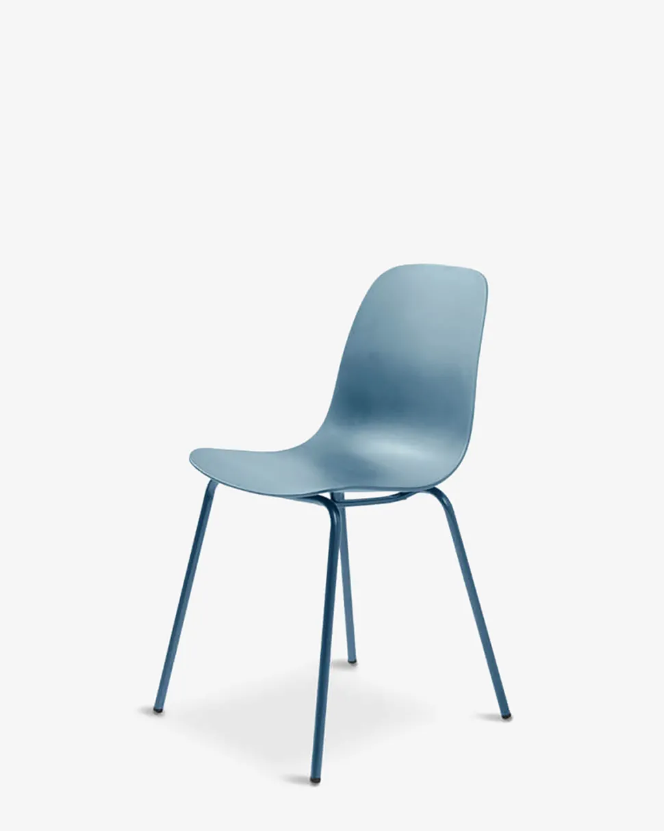 Whitby stolen fås i fem trendy farver, her vist i blå. Stolen skaber et stilrent udtryk.