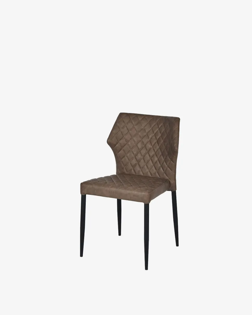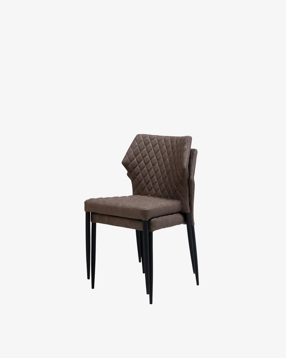 Ydun er en flot spisebordsstol med elegante harlekinsyninger, der giver stolen et eksklusivt blikfang omkring spisebordet. Stolen er betrukket med blødt mørkebrunt tekstillæder og har et sort stel, som sikrer et let og moderne udtryk.
