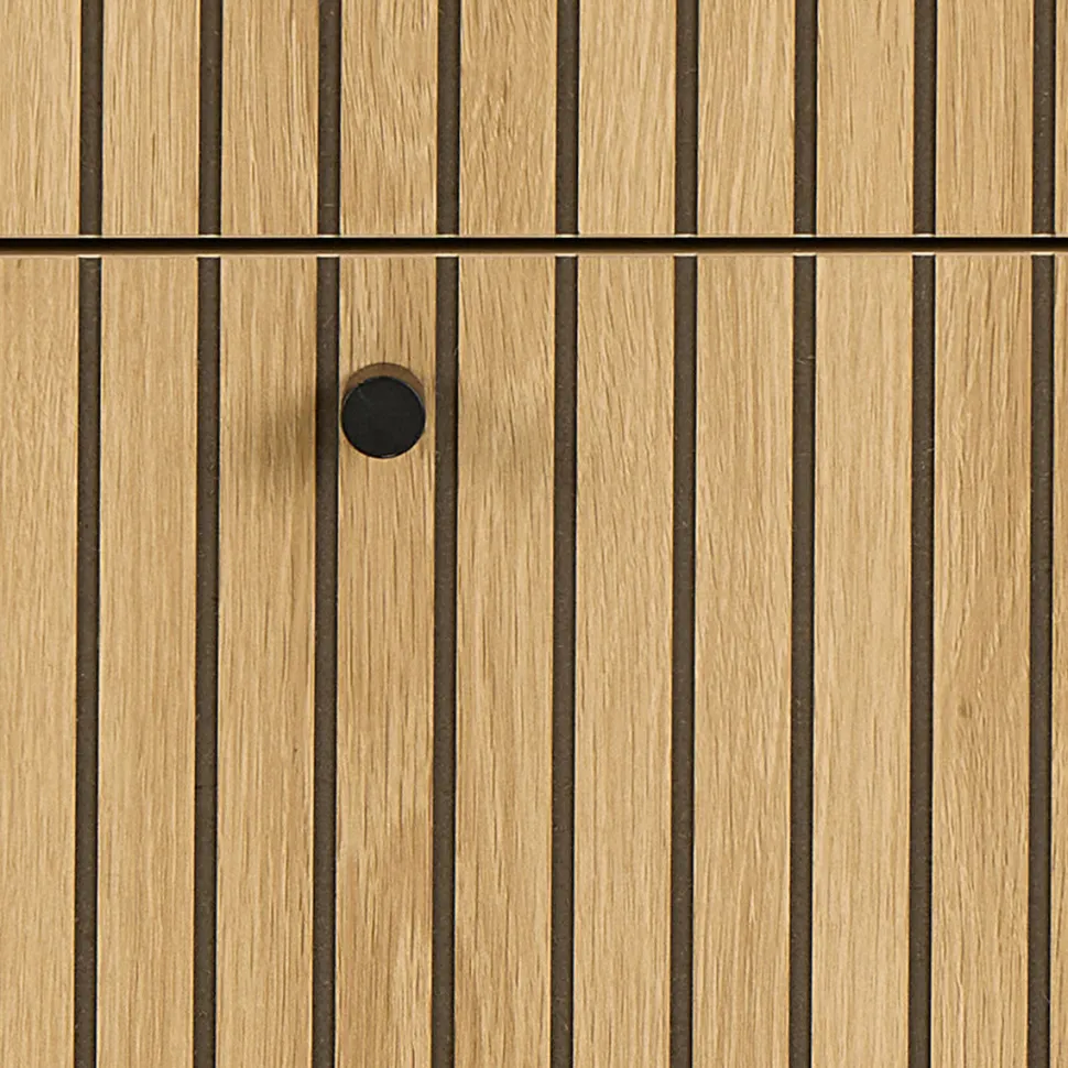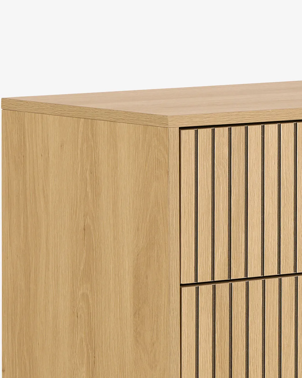 Kommoden har et elegant, nordisk design med lodrette lameller på fronten, som giver et smukt og harmonisk udtryk.