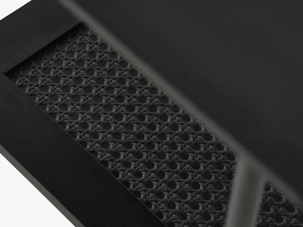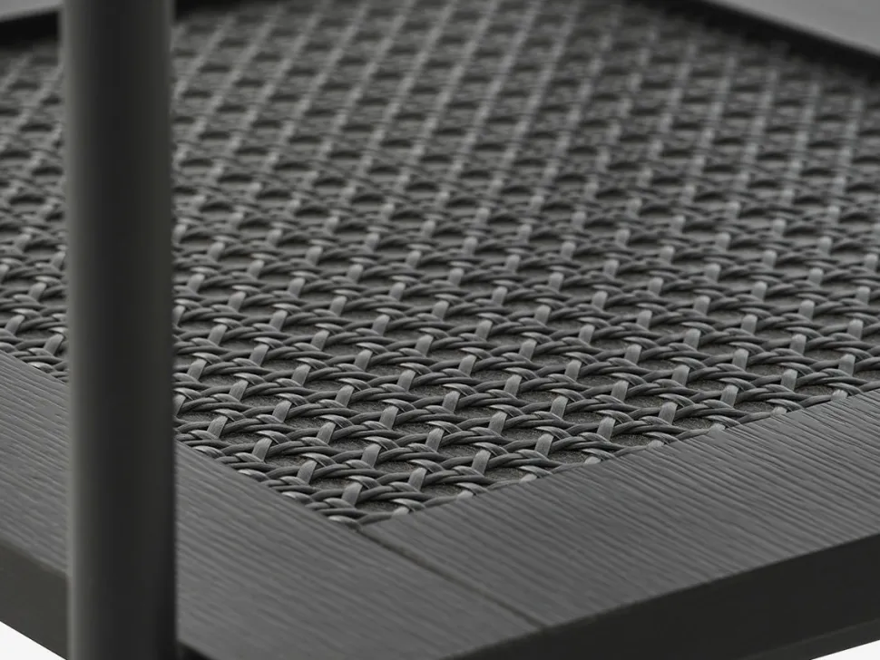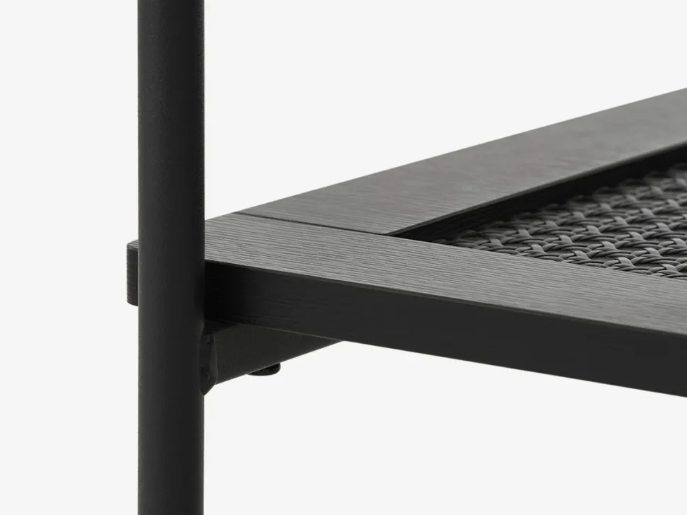 Alva hjørnebordet i sort er en del af Alva-serien og kombinerer et stilrent, moderne udtryk med varme naturdetaljer. Den sorte overflade giver bordet et mere markant look, mens den flettede hylde under bordpladen tilfører struktur og lethed.