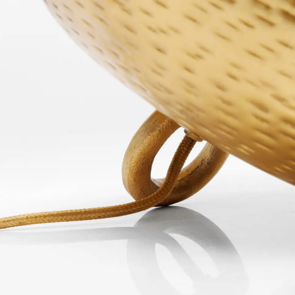 Gulvlampen er udført i messingbelagt stål, der giver et meget blødt og hyggeligt lys, og med sin hamrede overflade ser lampen ud som om den er hjemmelavet.