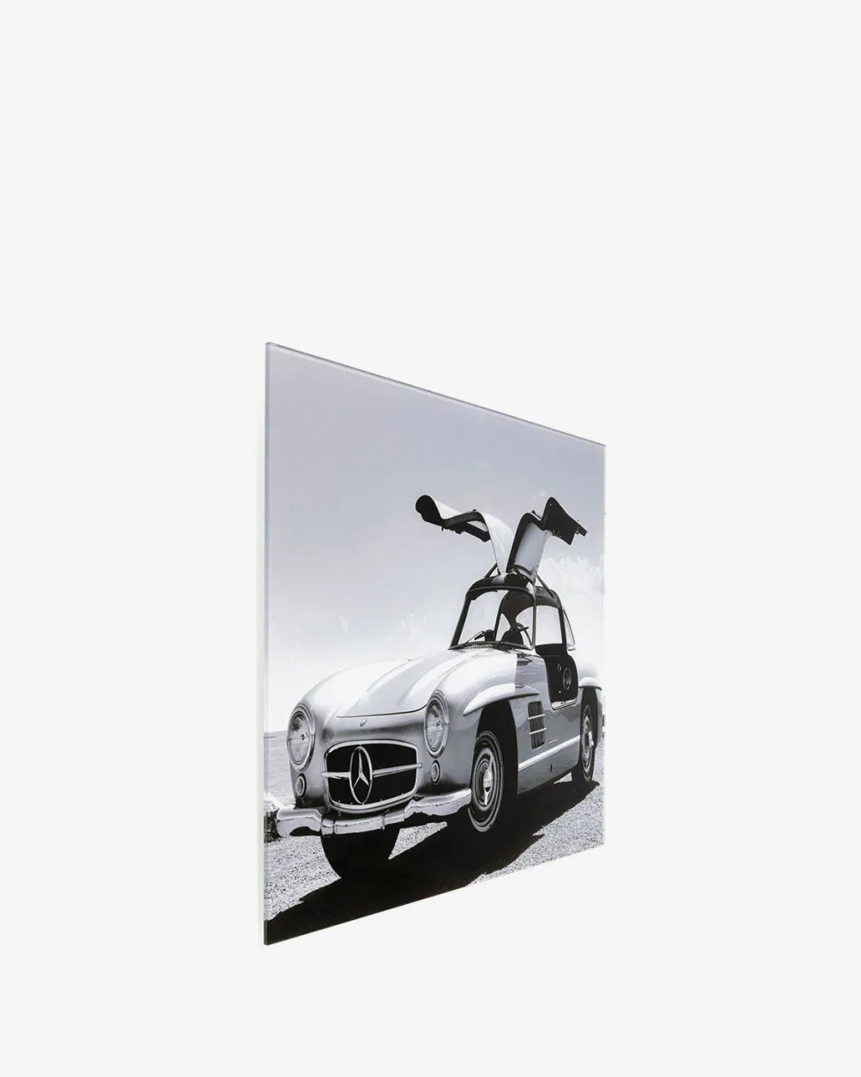 Dette elegante glasbillede kombinerer klassisk bilnostalgi med moderne design.