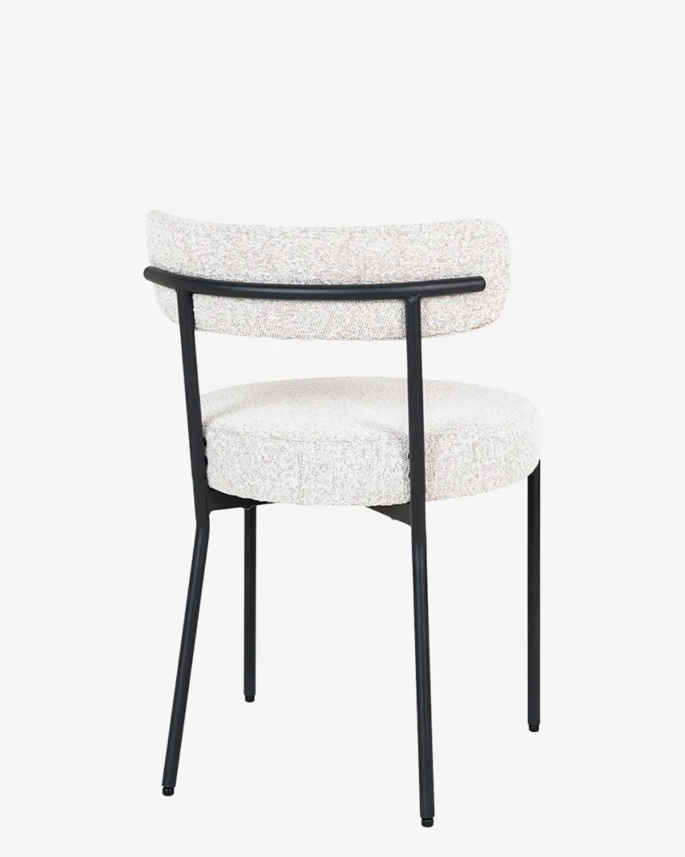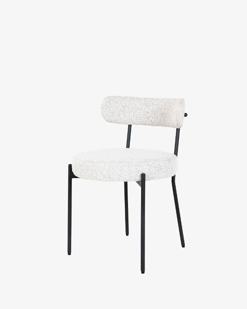 Med Badalona spisebordsstol i hvid bouclé får du et elegant præg i din spisestue.