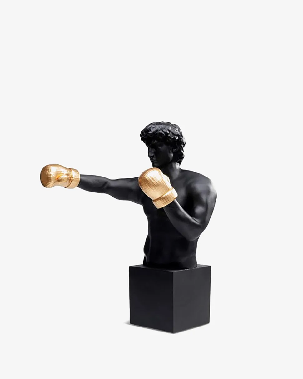 Denne kunstneriske og dekorative skulptur, der forestiller en bokser med guldhandsker, er en fantastisk måde at tilføje individuel atmosfære til dit hjem.