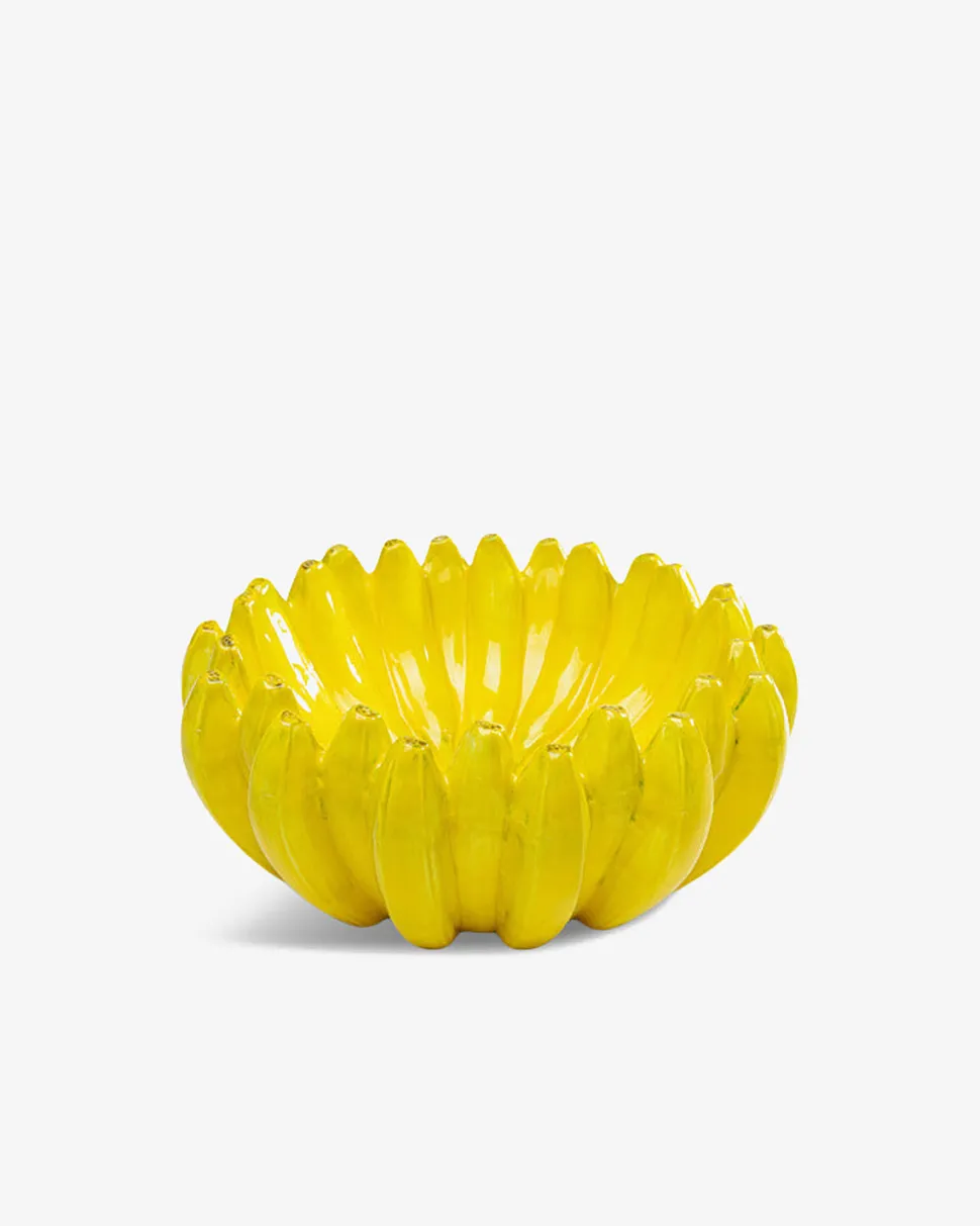 Denne smukke gule keramiske banan skål er glaseret og håndmalet. En unik skål, der er perfekt til dekorativ opbevaring eller som frugtskål.