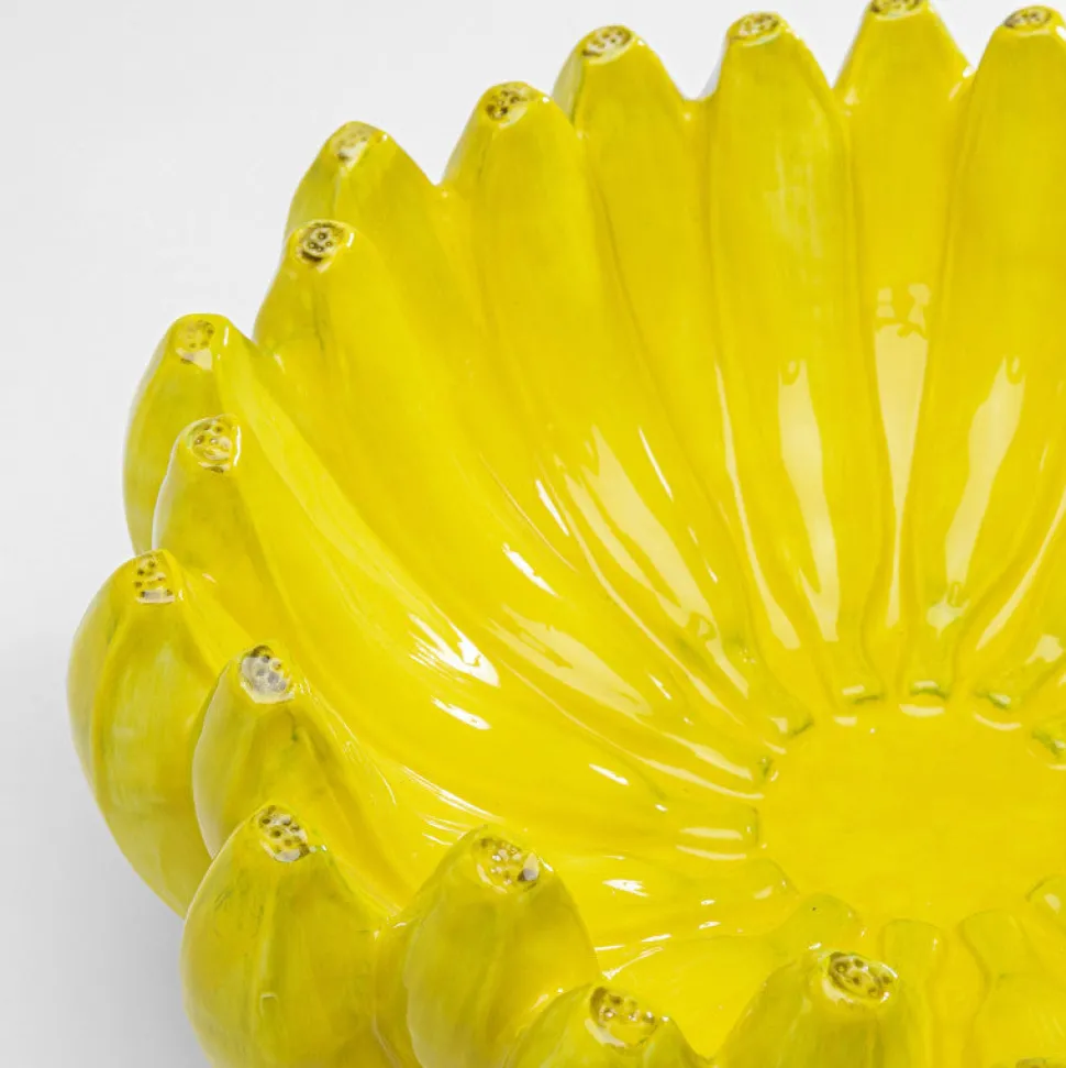 Denne smukke gule keramiske banan skål er glaseret og håndmalet.