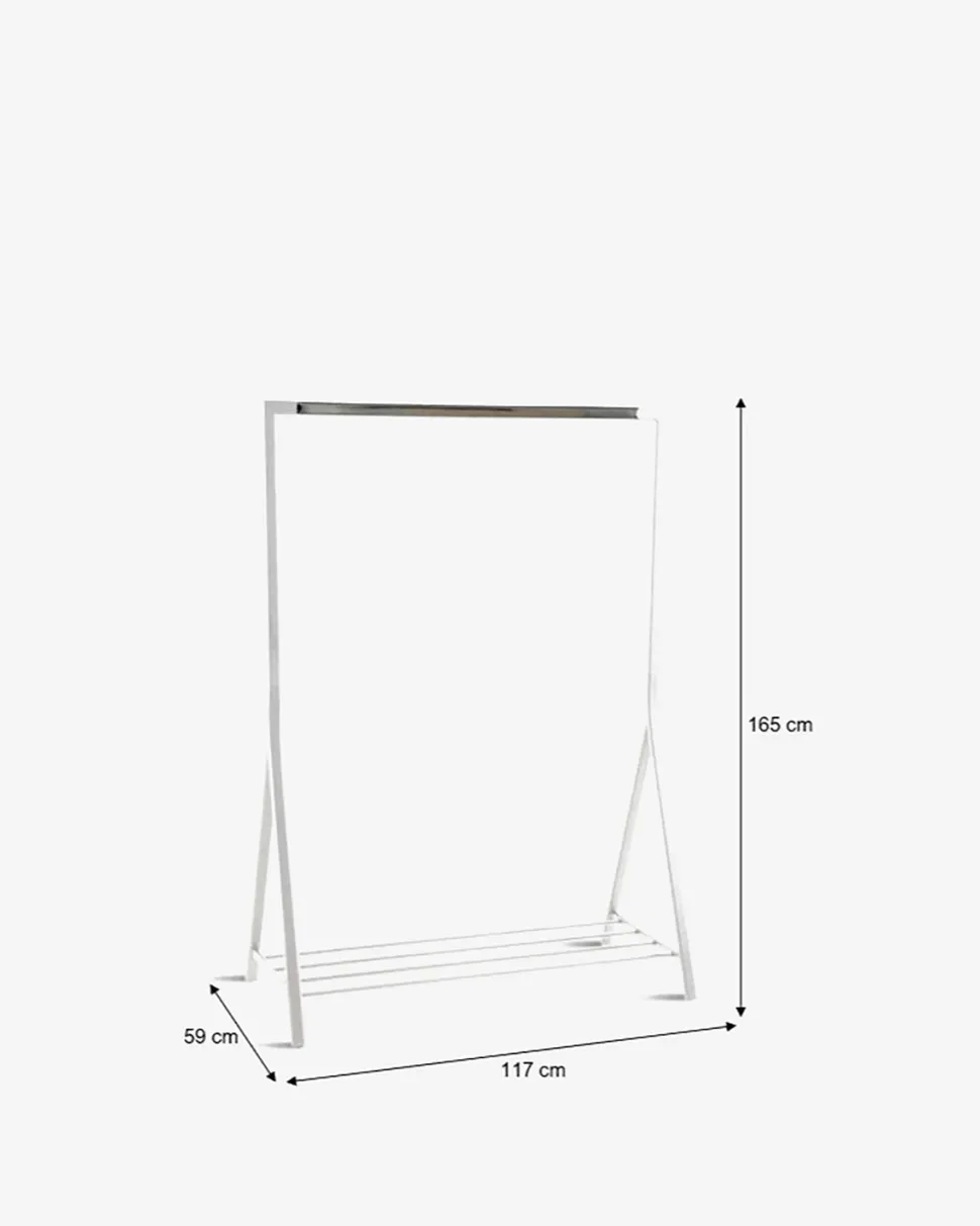 Let og enkelt tøjstativ der er perfekt til jakker i entréen eller kjoler i påklædnings værelset.