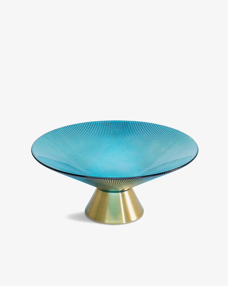 Birdie glasskål i en flot blå farve med messingbund, som vil pynte elegant på ethvert bord.
