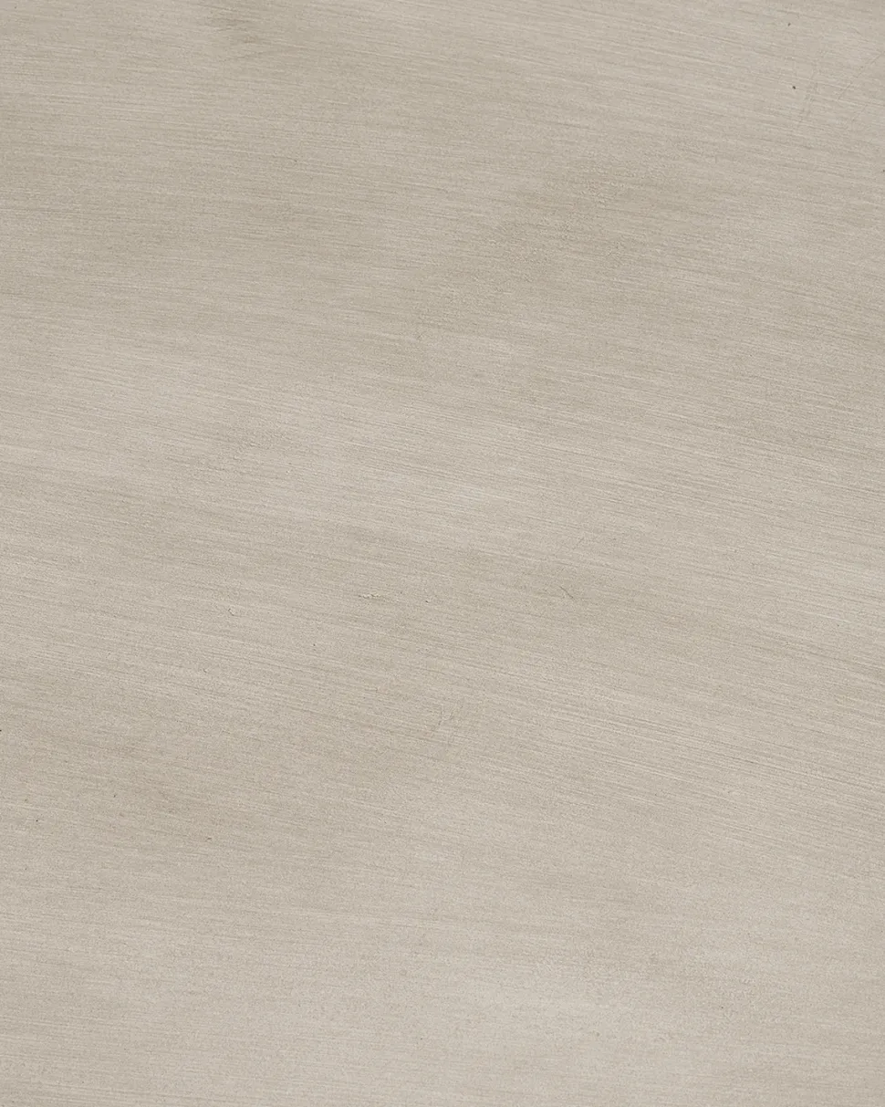 Det runde bord i grå fiberclay har en elegant form, hvor bordplade og sokkel smelter sammen i et harmonisk design. Materialet er både robust og vedligeholdelsesfrit, hvilket gør bordet ideelt til udendørs brug.