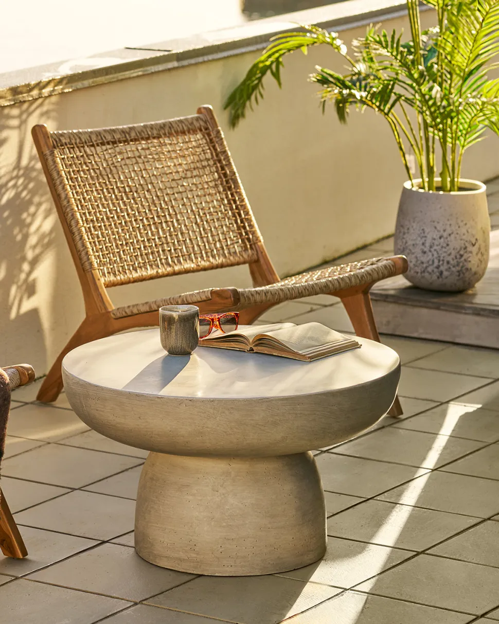 Bonnet havesofabord Ø.70 cm i grå fiberclay. Stilrent og skulpturelt design til uderummet.