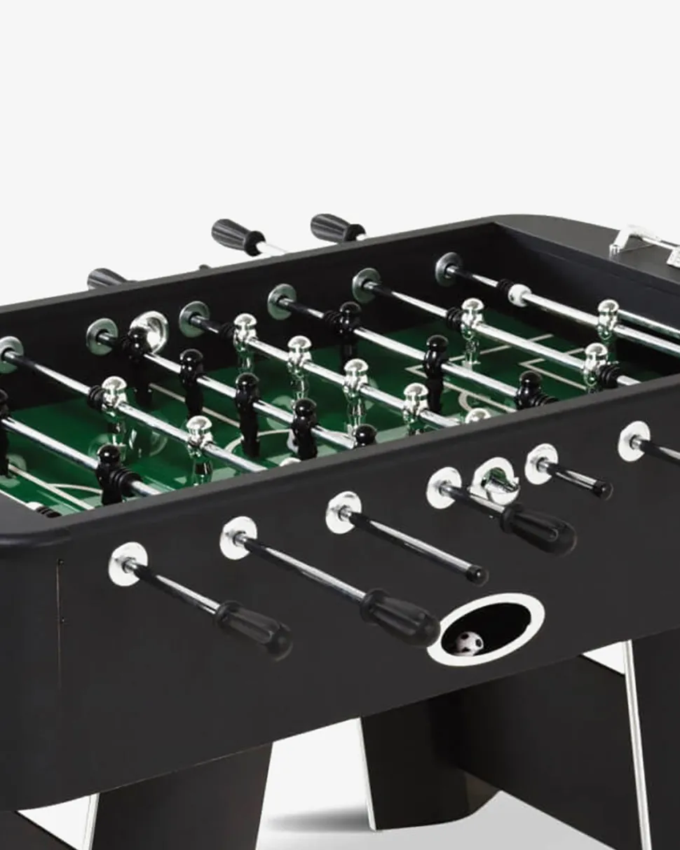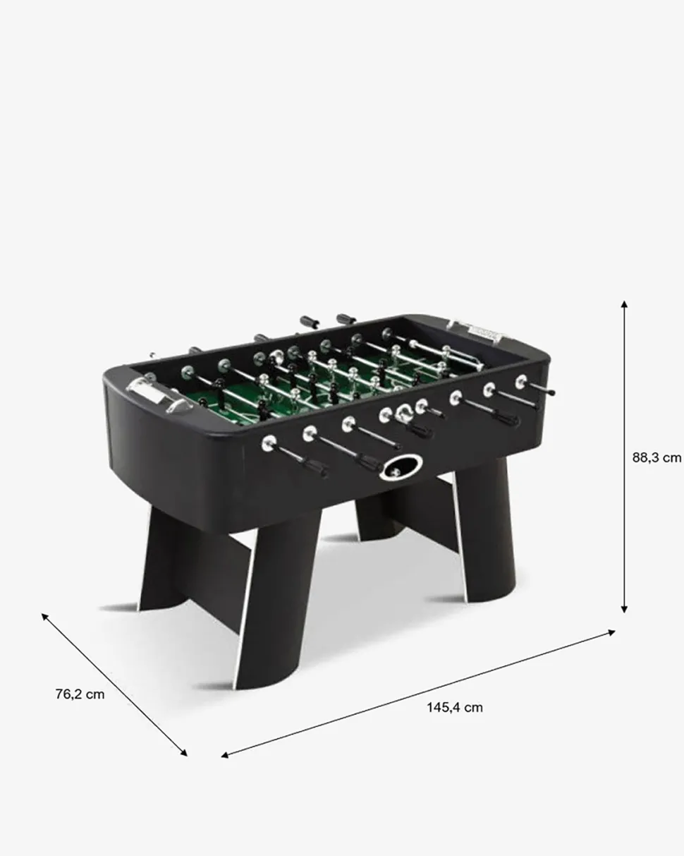 Det elegante sorte bord med grønt spillefelt og fodboldspillere i krom skaber straks blikfang, og indbyder til spændende og sjove spil med dine gæster, som du her kan udfordre i dit eget hjemmestadion.