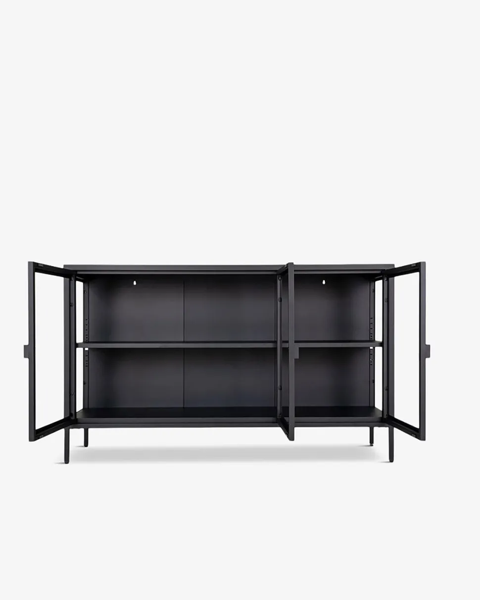 Denne stilfulde Brisbane skænk i sort metal og med sorte metalben er den perfekte tilføjelse til ethvert moderne hjem.