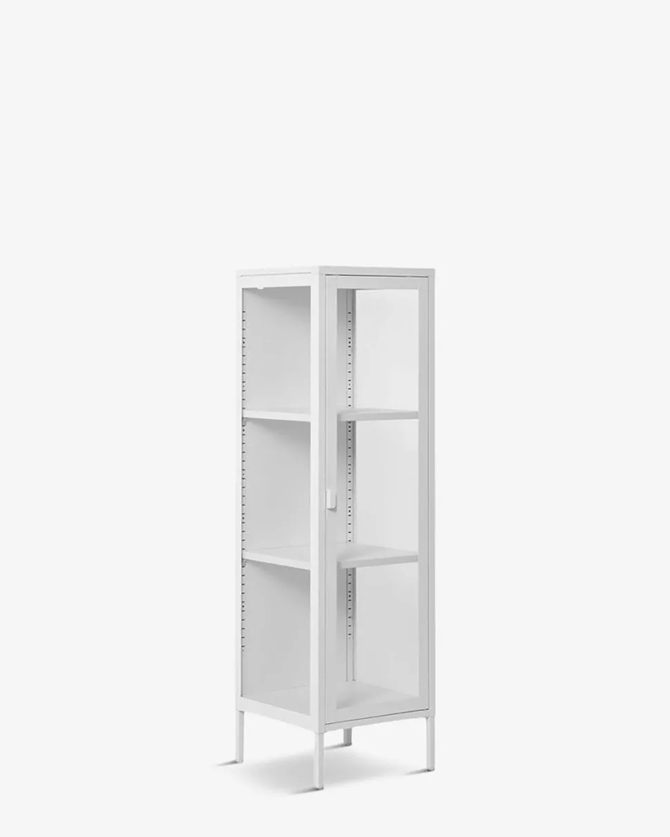 Giv dit hjem et moderne præg med vores Brisbane vitrine i elegant hvid metal.