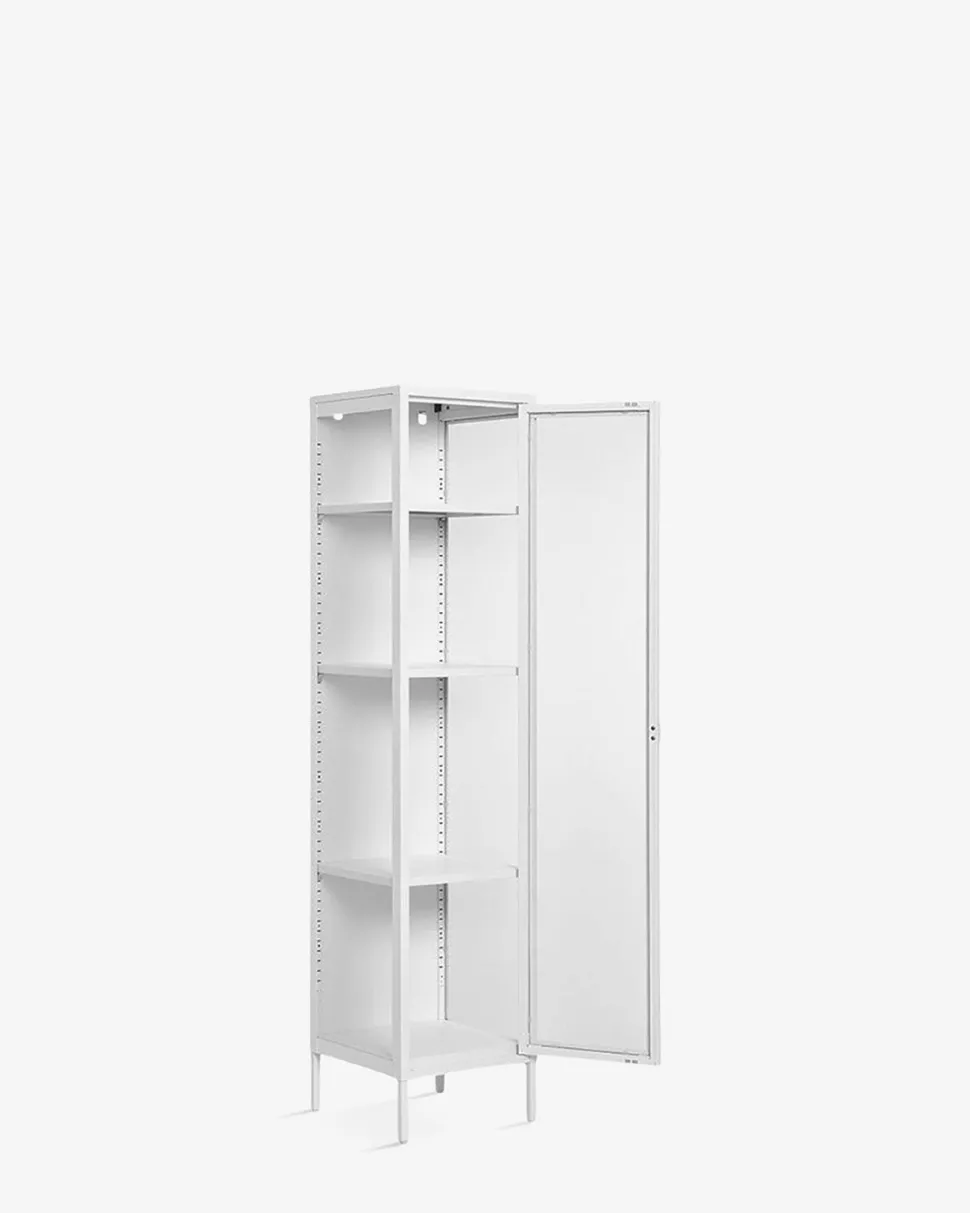 Giv dit hjem et moderne præg med vores Brisbane vitrine i elegant hvid metal.