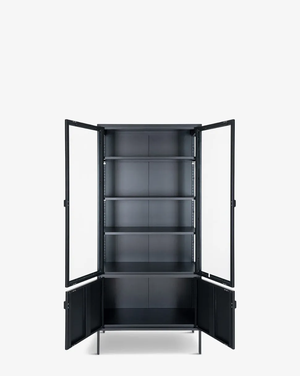 Giv dit hjem et moderne præg med vores Brisbane vitrine i elegant sort metal.