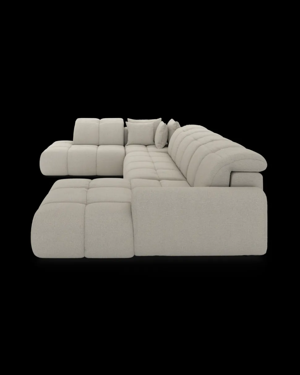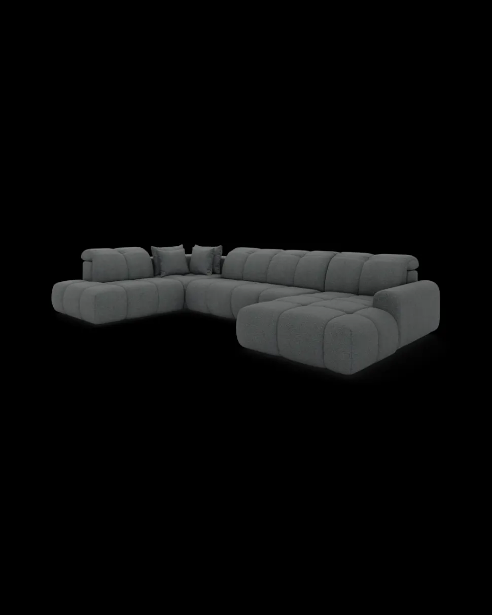 BULLET U-hjørnesofaen er den ultimative flydersofa til dig, der vil have masser af plads og et stærkt udtryk i stuen. Kombinationen af rundt hjørne, chaiselong og open end giver en opstilling, der både føles stor og åben – perfekt til familieliv og hyggelige aftener.
