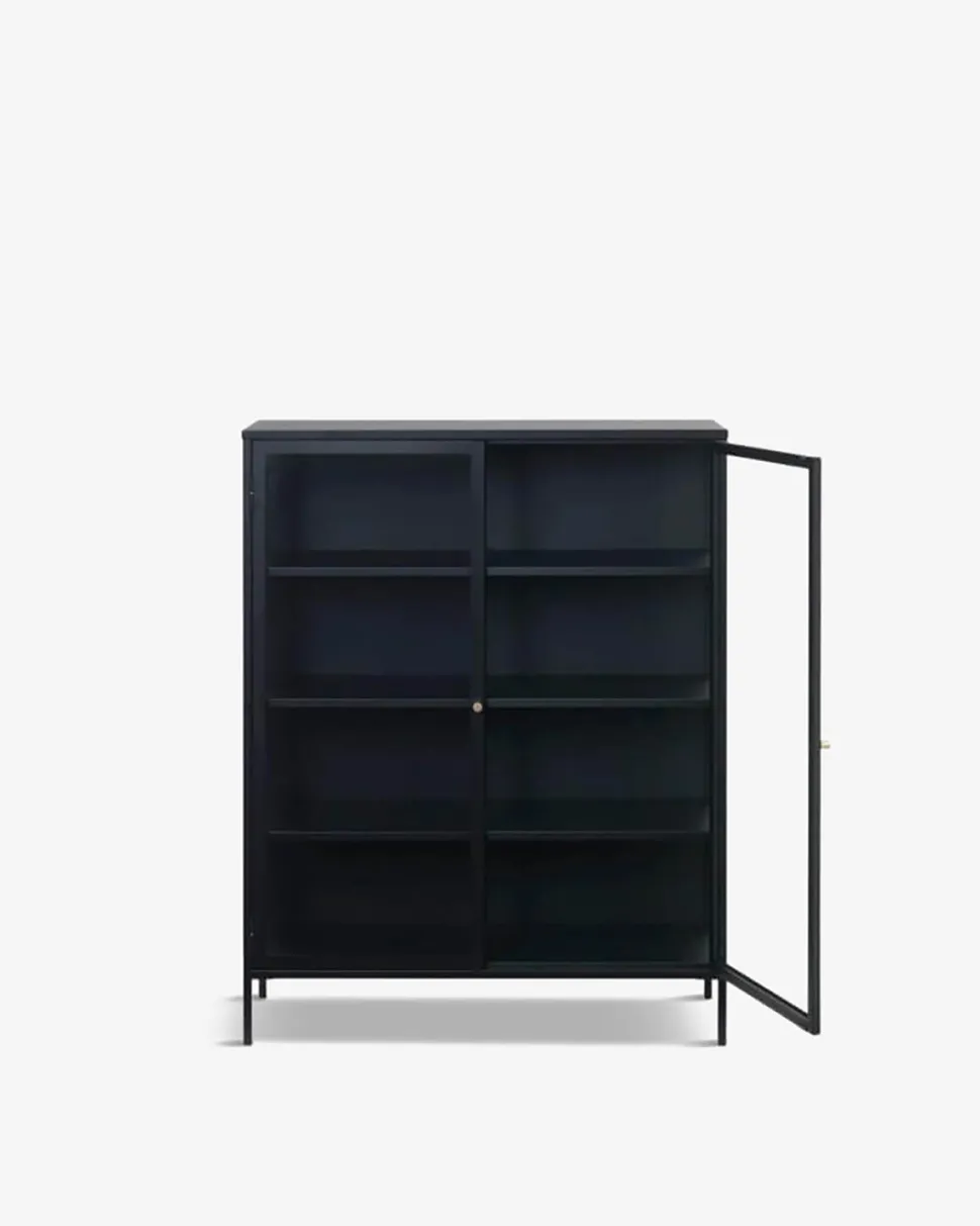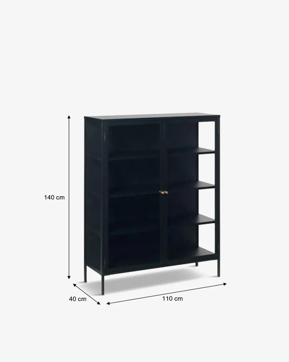 Det flotte Carmel vitrineskab er en smuk kombination af råt metal med et industrielt udtryk.