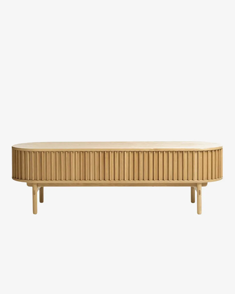 Designet er tidsløst klassisk og jalousi lågerne med lameller giver tv-bordet et moderne twist, som får bordet til at passe ind i de fleste stilarter og hjem.