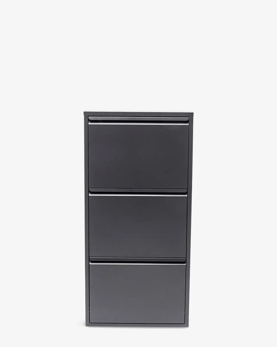 Caruso skoskabet i pulverlakeret stålplade og attraktiv lakering i antracit er et meget stilrent og elegant skoskab.