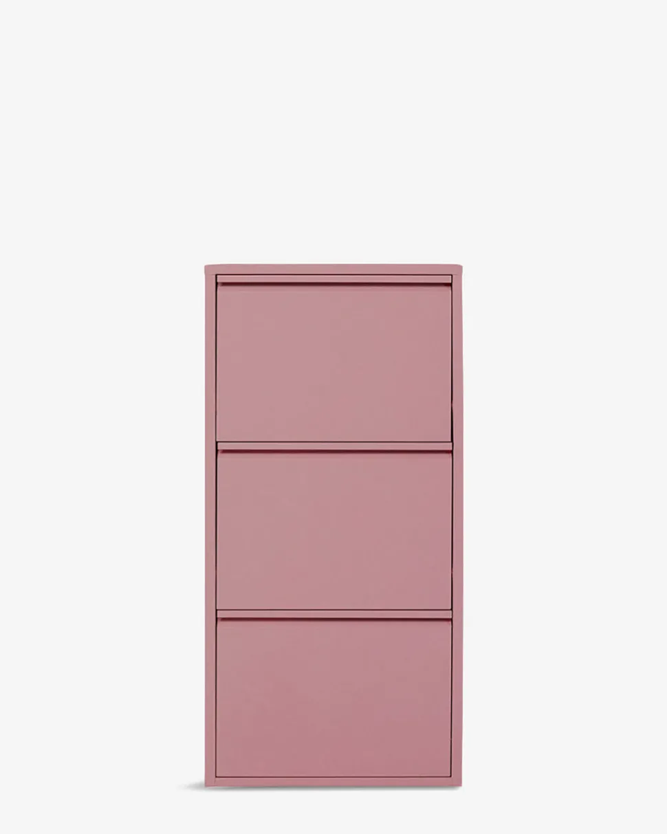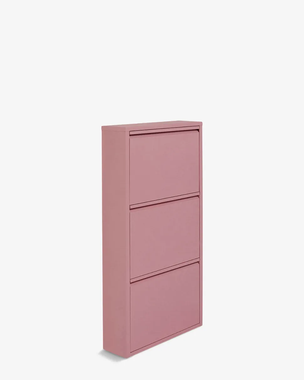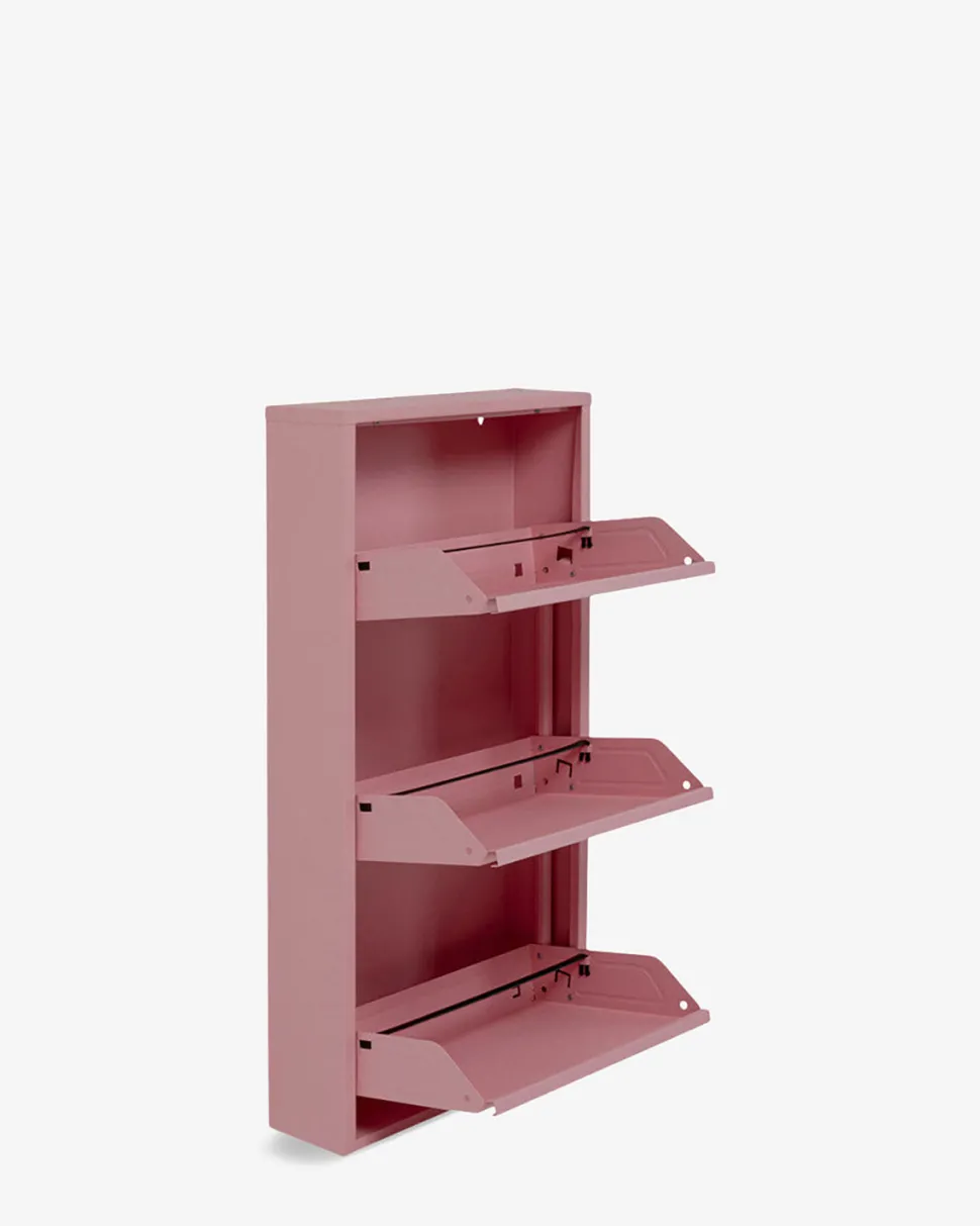 Caruso Skoskab i pulverlakeret stålplade med attraktiv rosa farvet lakering. Et stilrent og elegant møbel til entréen.