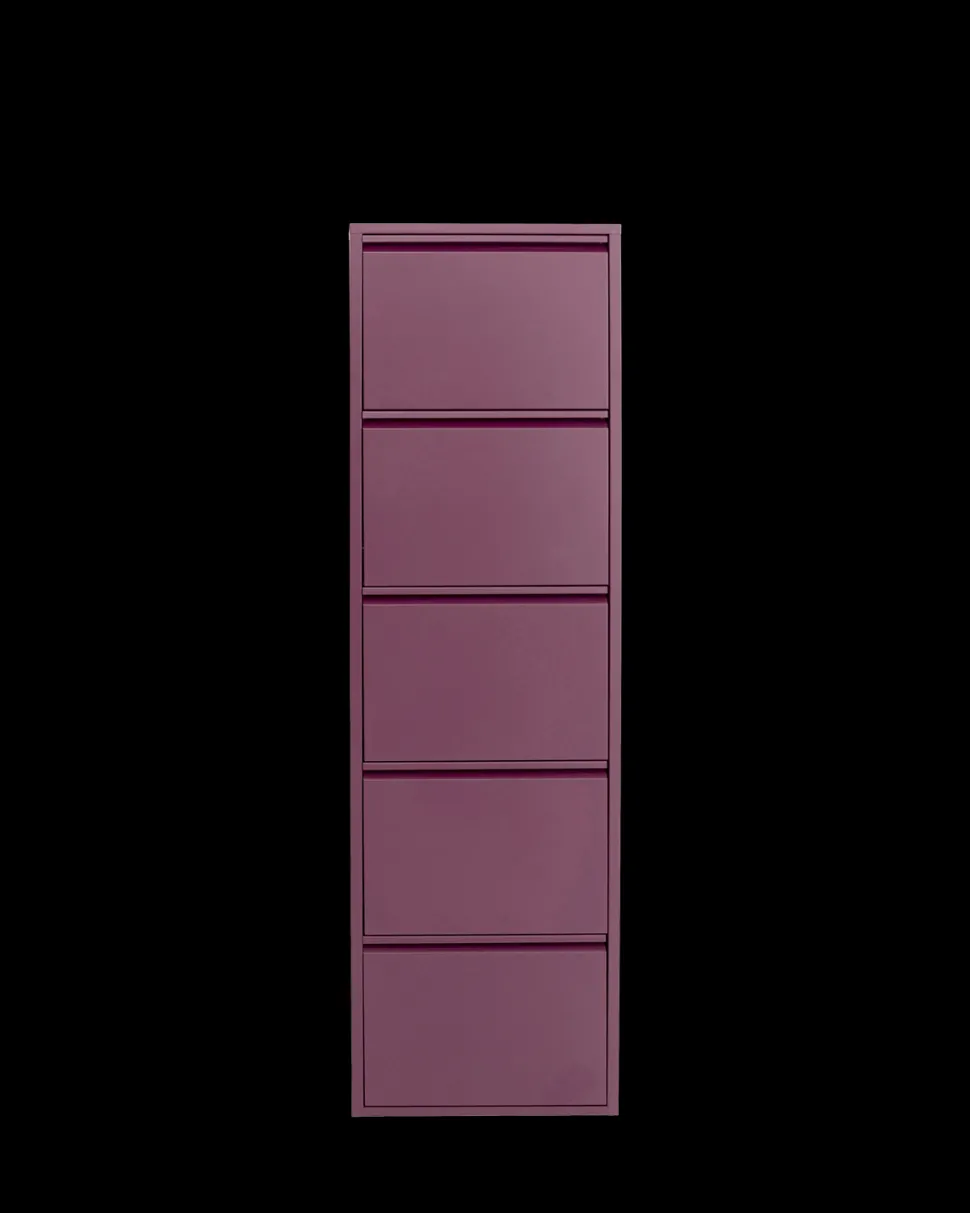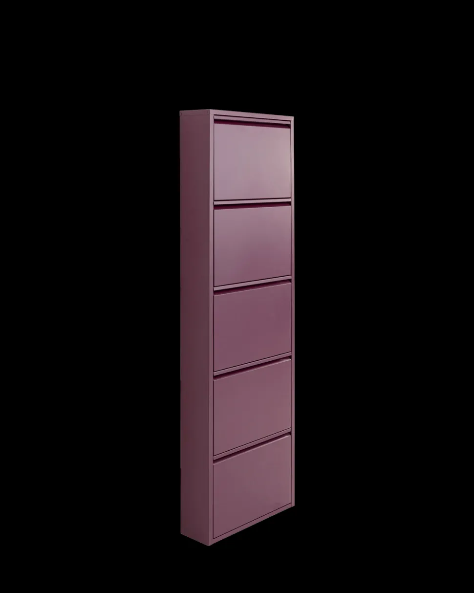 Denne variant har 5 låger, hvilket giver ekstra god opbevaringsplads i højden. Den lilla farve tilfører et moderne og personligt udtryk og gør skoskabet til et dekorativt element i indretningen.