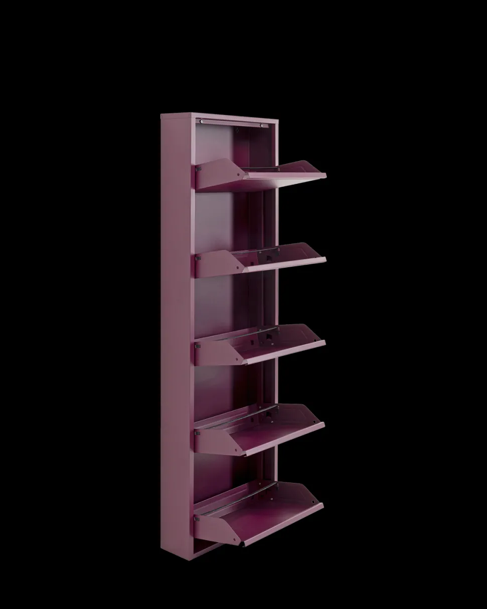 Caruso skoskab – 5 låger i lilla metal. Slankt skoskab til pladsbesparende opbevaring.