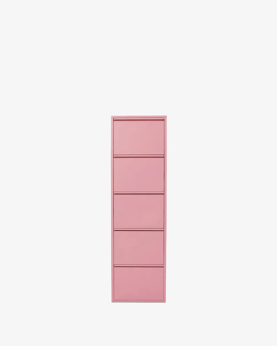 Caruso Skoskab i pulverlakeret stålplade og attraktiv rosafarvet lakering. Et meget stilrent og farverigt møbel.