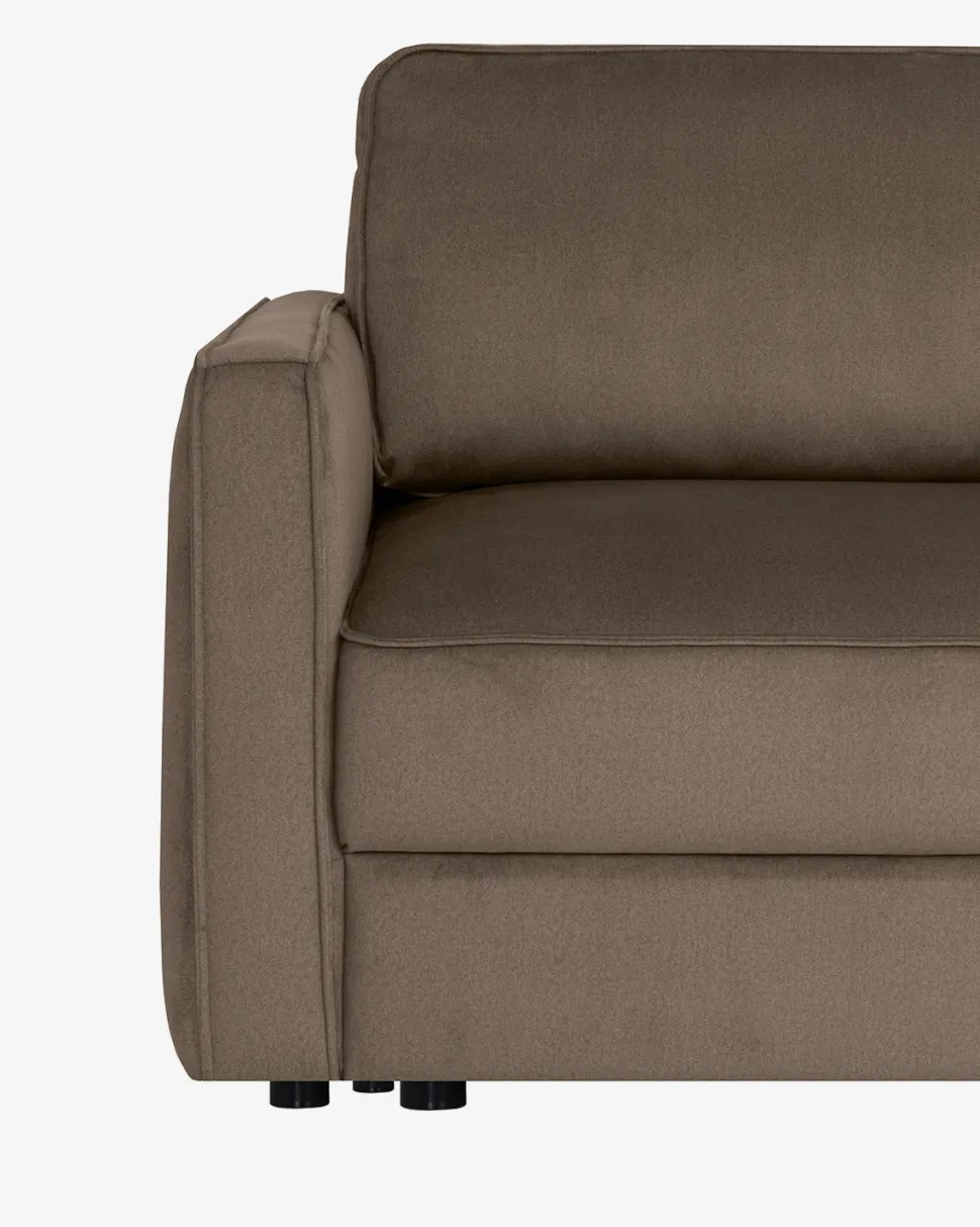 Sovesofaen er polstret med behageligt slidstærkt stof og har komfortable sidde- og ryghynder, der giver god støtte i hverdagen. Med et enkelt greb kan sofaen nemt omdannes til en rummelig soveplads – perfekt til overnattende gæster eller som ekstra seng.