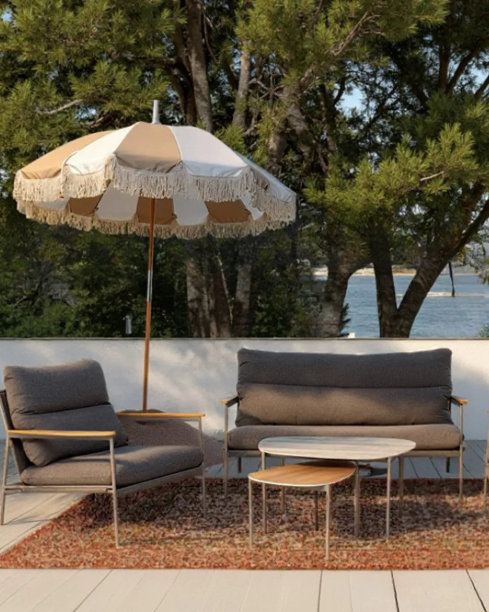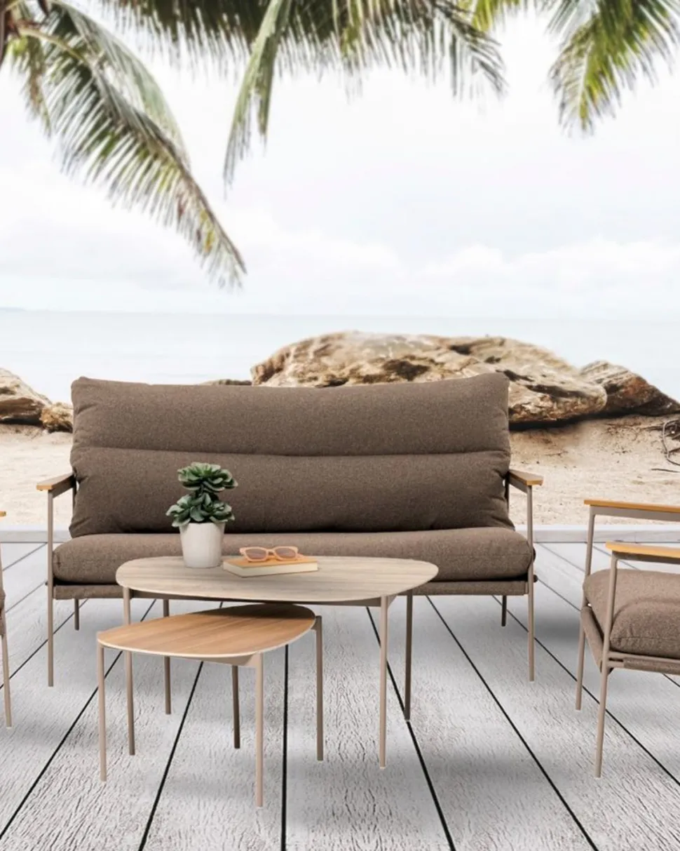 Cosica loungesættet forvandler terrassen, altanen eller haven til en stilfuld og afslappet lounge med et roligt og moderne udtryk. Den bløde cremebeige farve kombineret med varme detaljer i trælook skaber en indbydende og harmonisk helhed.