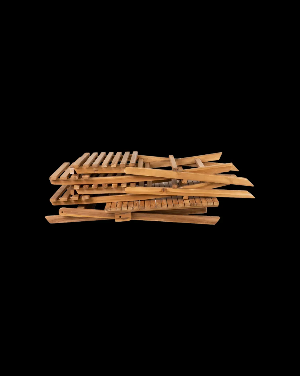 Cuenca cafésæt i natur teak med 2 stole og bord. Bord og stole kan klappes sammen for nem transport og opbevaring.