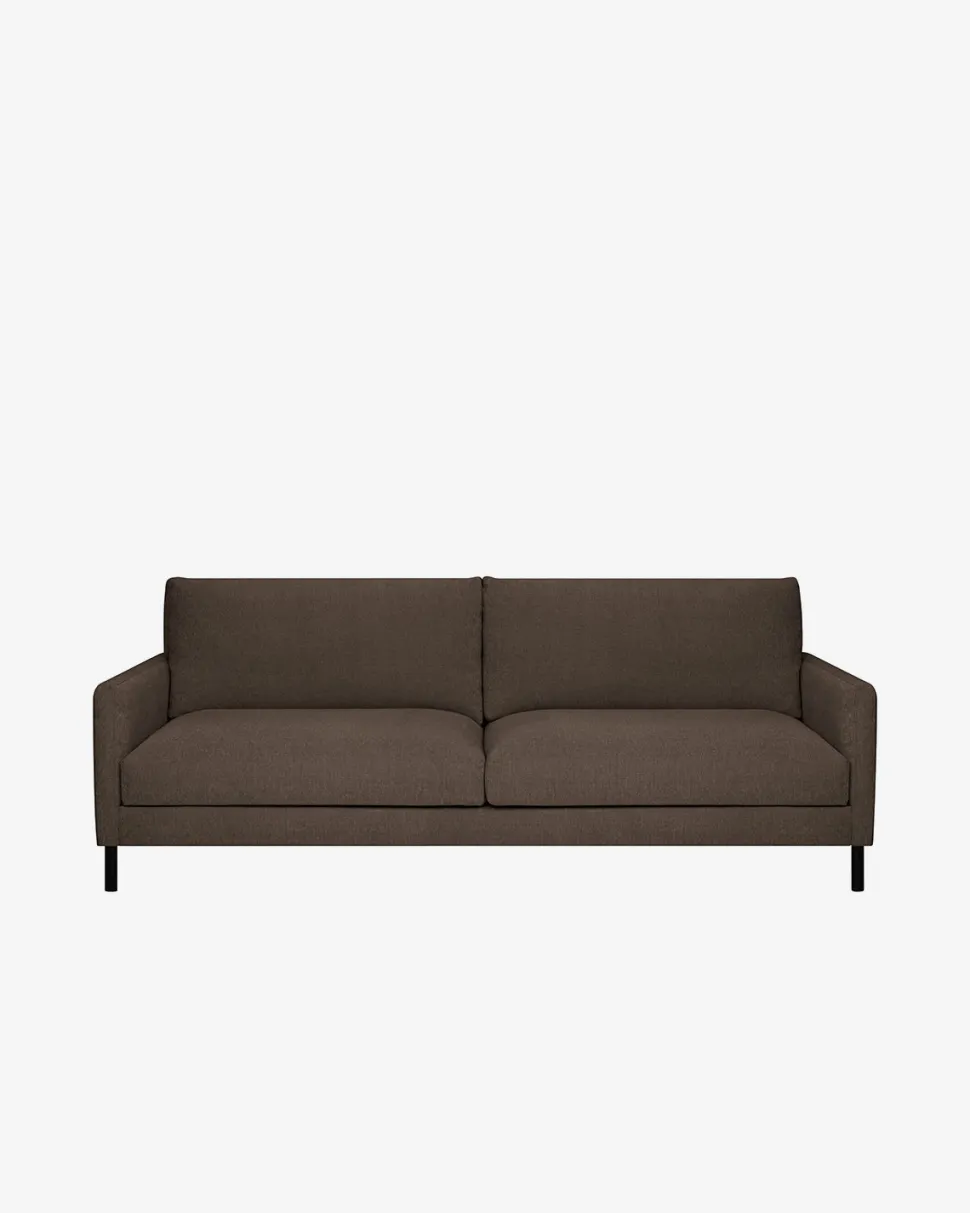 Sofaen er polstret med blødt, slidstærkt stof og har rummelige siddepladser, der giver høj komfort for op til tre personer. De faste hynder sikrer god støtte og bevarer formen, selv ved daglig brug. De lige armlæn og den stabile konstruktion giver sofaen et solidt og indbydende udtryk.