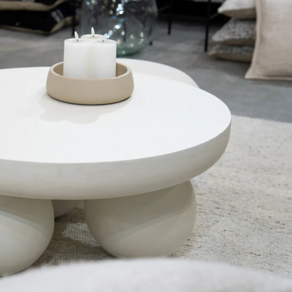 Oplev sofabordet, hvor skulpturel elegance møder funktionelt design. Bordets unikke, organiske form skaber et kunstnerisk og sofistikeret udtryk, mens den bløde, runde silhuet og den lyse beige farve tilføjer en rolig og indbydende æstetik til dit hjem.