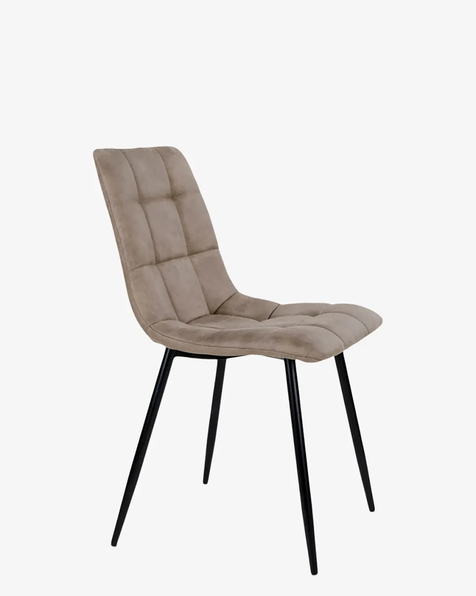 Frigg spisebordsstol er her i en lækker lys brun microfiber, og med en fantastisk sidde komfort på grund af det polstrede sæde og ryg.