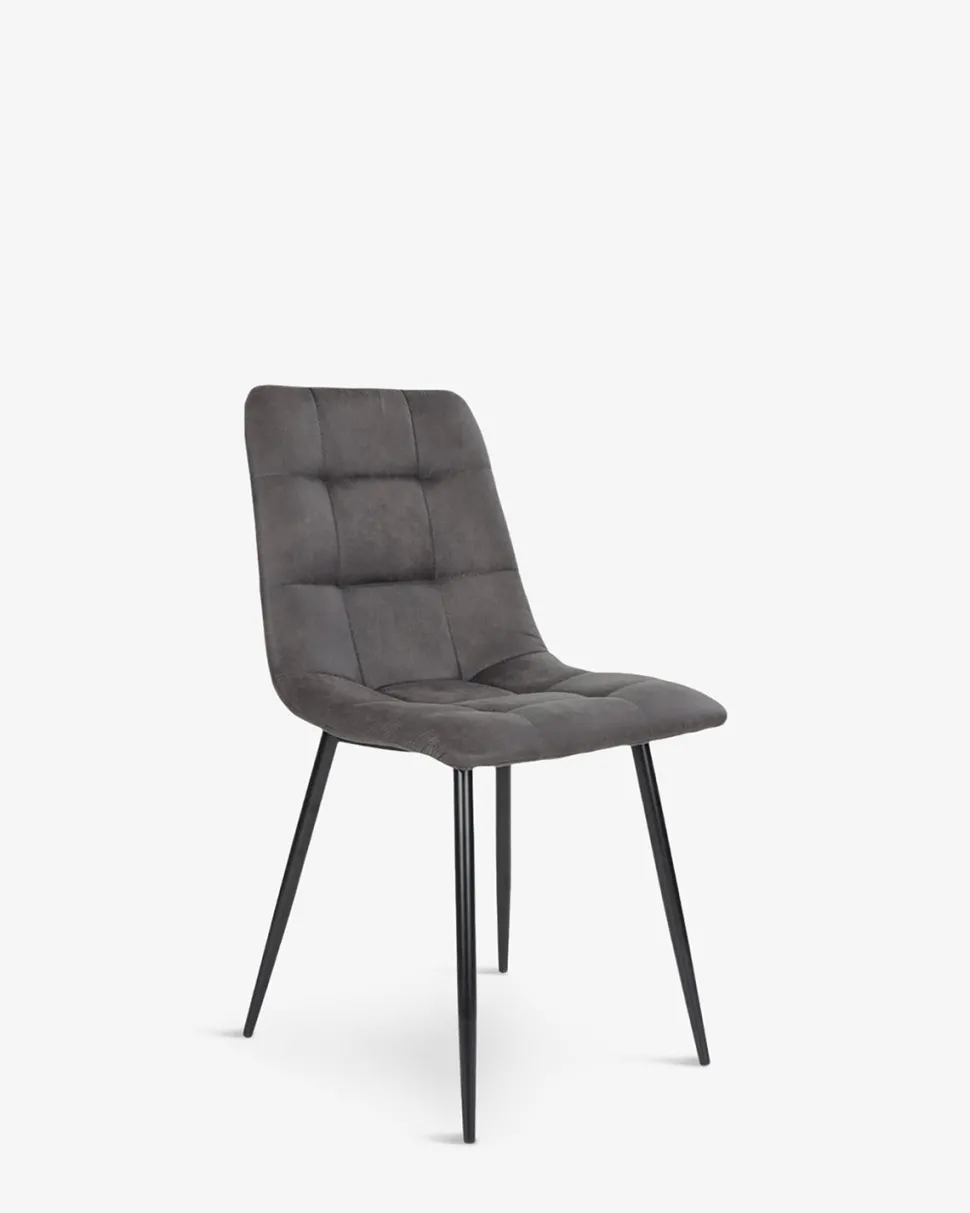 Spisebordsstol i en lækker mørk grå mikrofiber, og med en fantastisk sidde komfort på grund af det polstrede sæde og ryg.