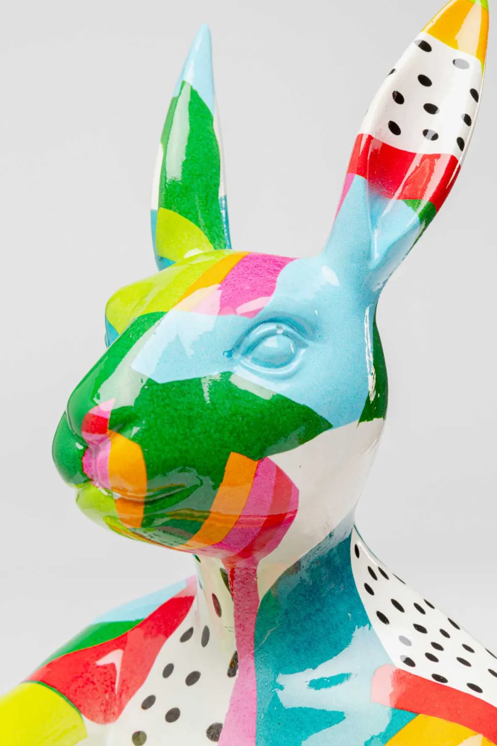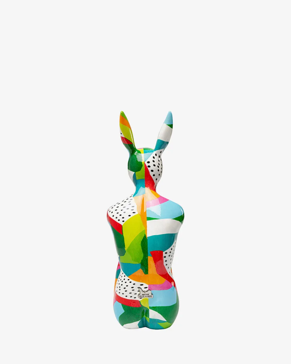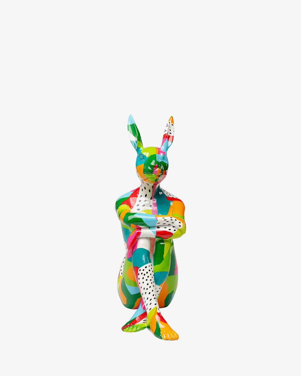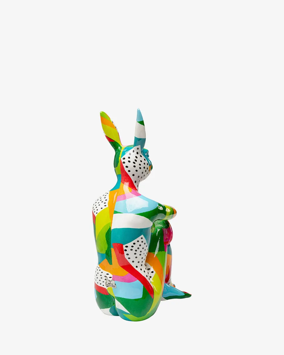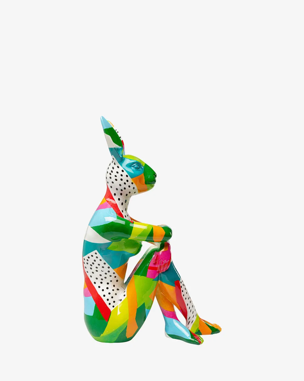 +Farverig dekorativ kaninfigur lavet af en kunstner, 39 x 25 x 14 centimeter (H/B/D)