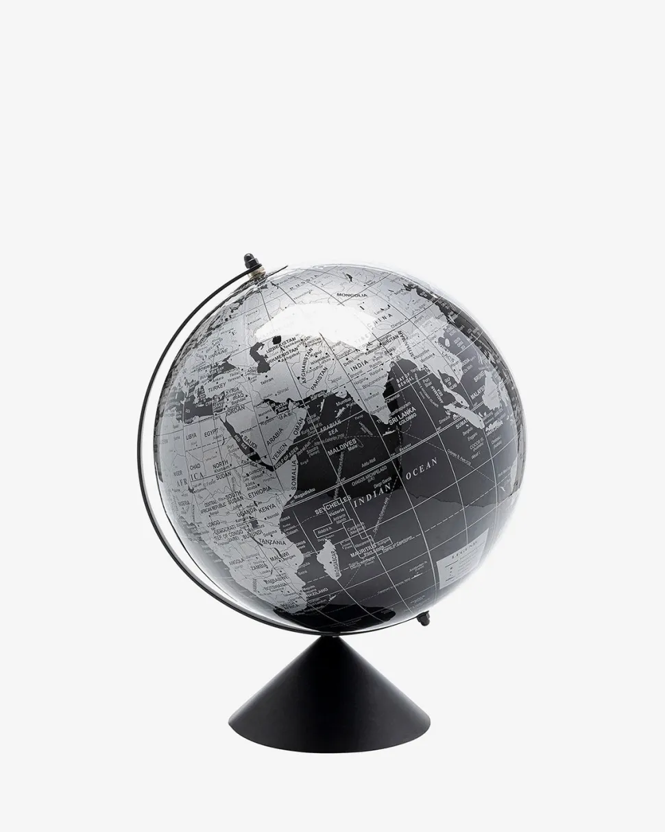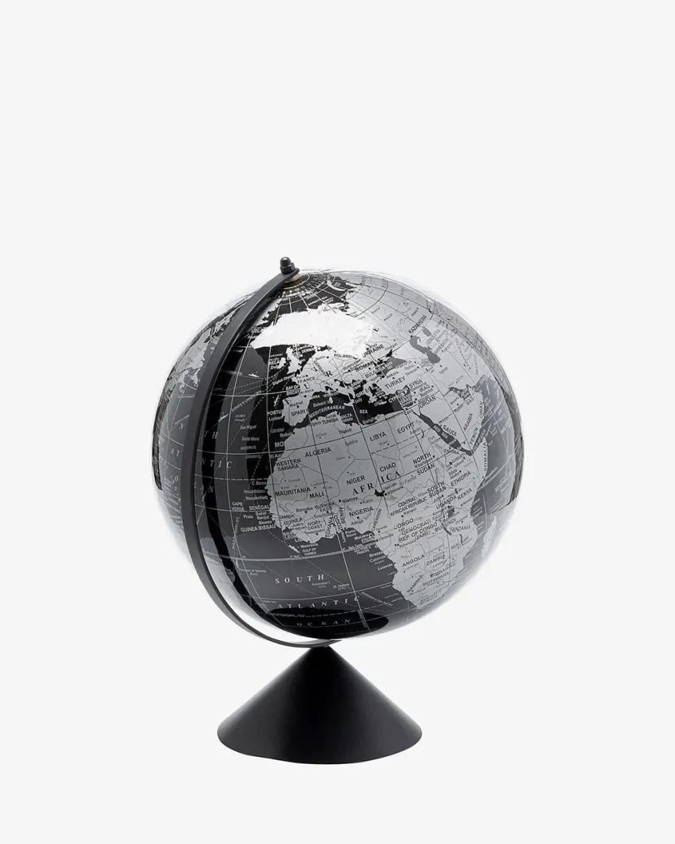 Denne stilrene globus i sort og grå toner kombinerer klassisk funktion med moderne æstetik. Med en højde på 40 cm er den perfekt som dekorativt indslag på reolen, skrivebordet eller hjemmekontoret.
