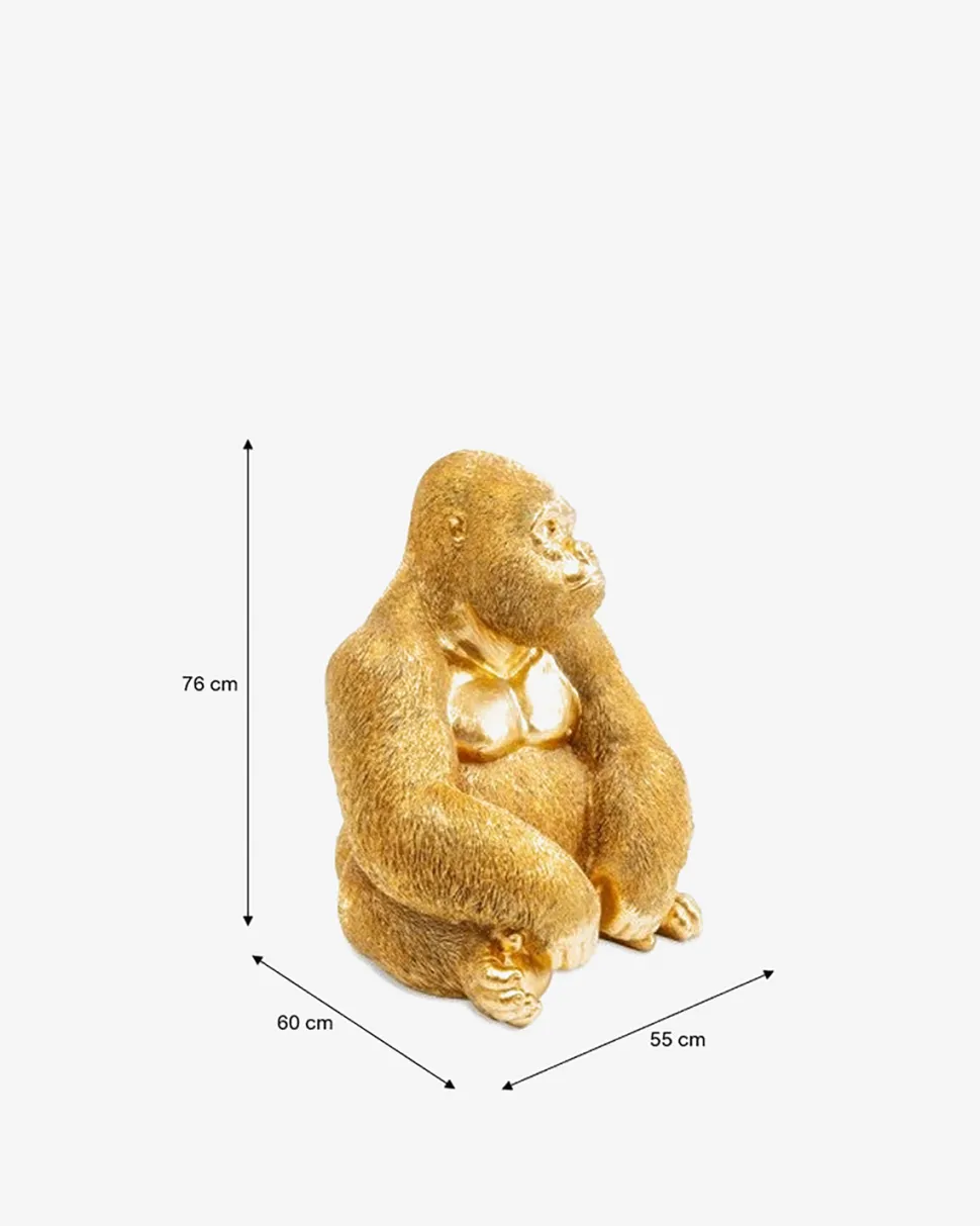 Denne storslåede og dekorative guldfarvede gorilla statue er bare slet ikke til at stå for. Den vil være den perfekte tilføjelse til dit hjem, hvis du søger lidt sjov udsmykning og glamour som uden tvivl vil skabe opmærksomhed i dit hjem og frembringe et smil på læben hos både dig og dine gæster.