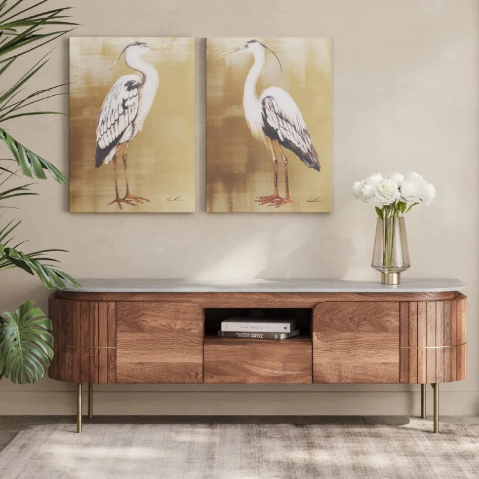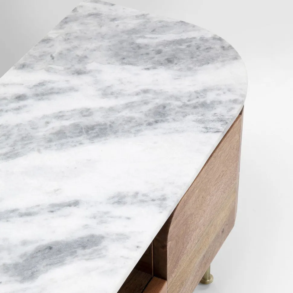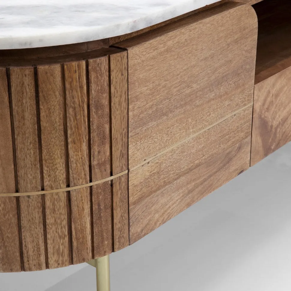 Elegant TV-bord i mangotræ med hvid marmortop, der vil stå i din stue som en smuk og samtidig praktisk detalje i rummet.