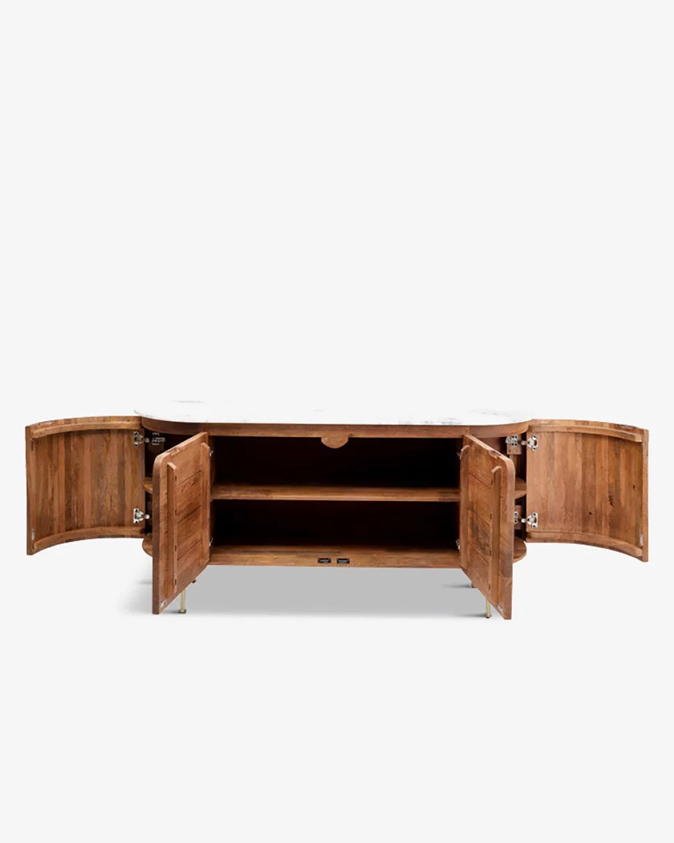 Elegant Grace skænk i mangotræ med hvid marmortop, der vil stå i din stue som en smuk og samtidig praktisk detalje i rummet.