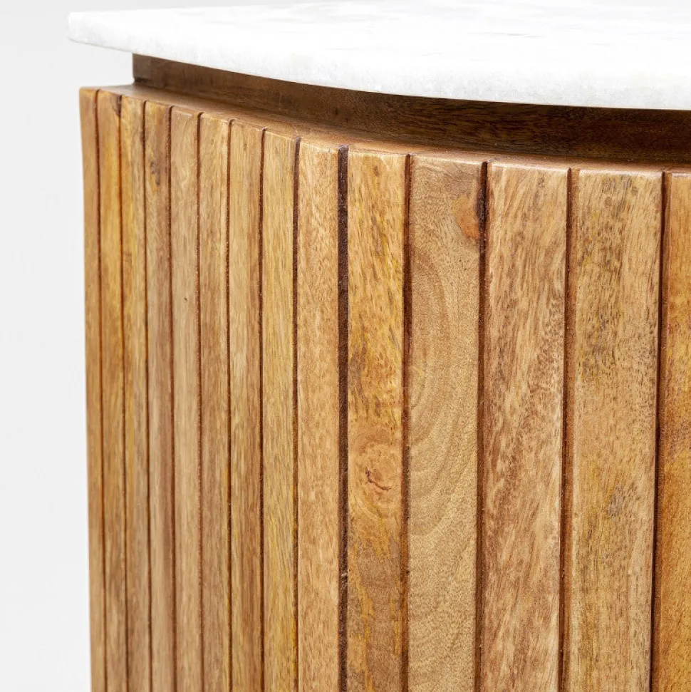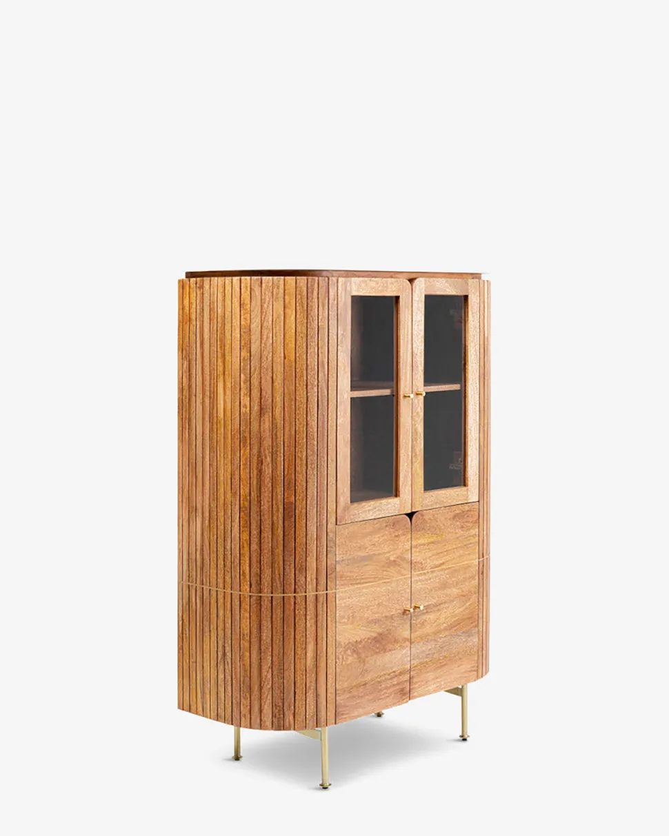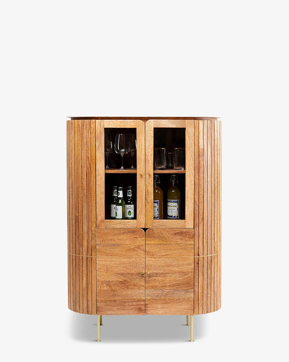 Grace vitrinen er et elegant og samtidig praktisk møbel. Den smukke hvide marmortop og mangotræets gyldne farve er smukke kontraster, og emmer af lækre naturprodukter.