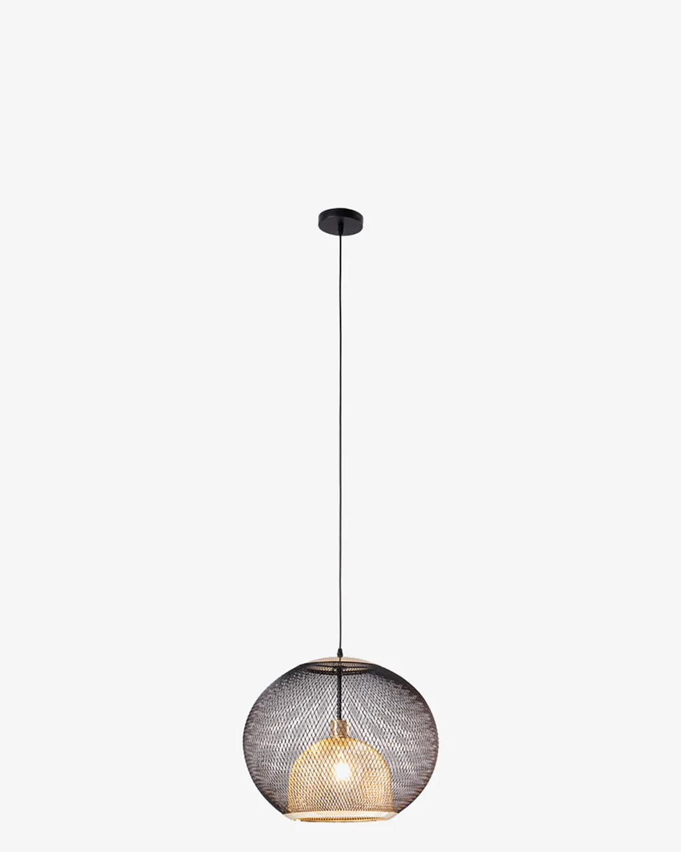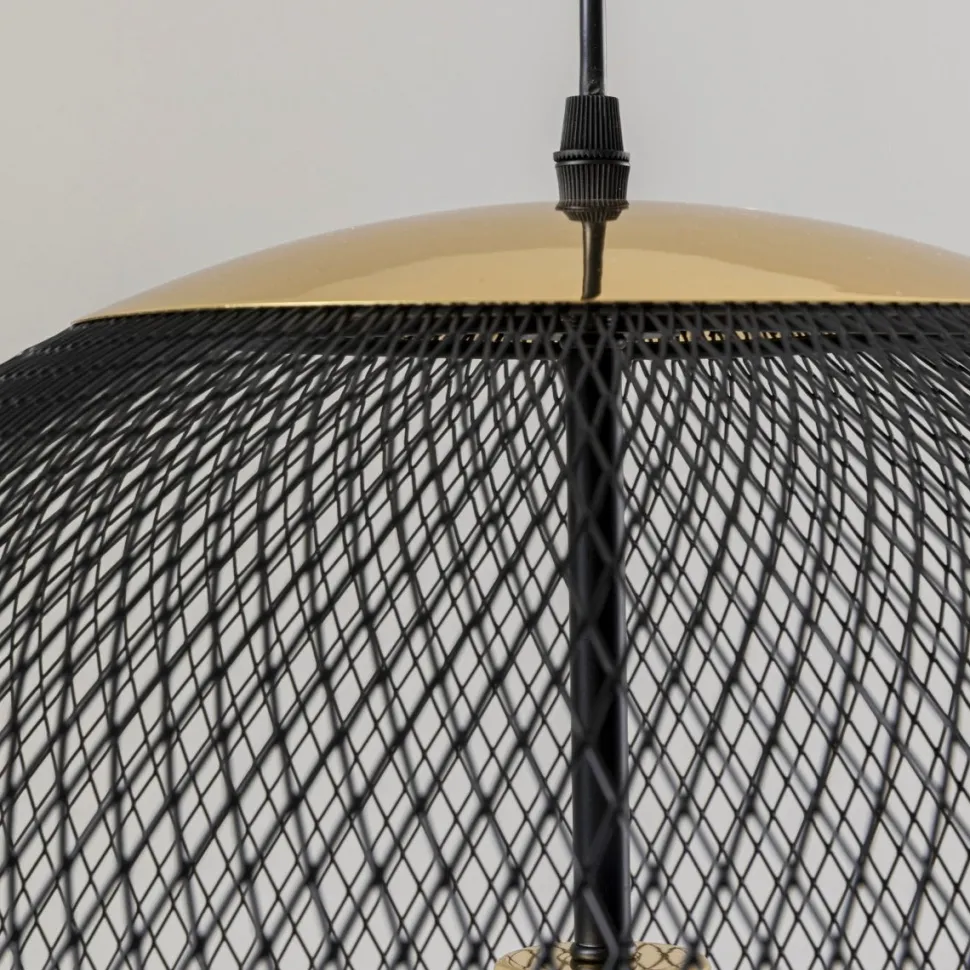 Grato pendel er en moderne og trendy loftslampe lavet af trådnet i sort og guld.