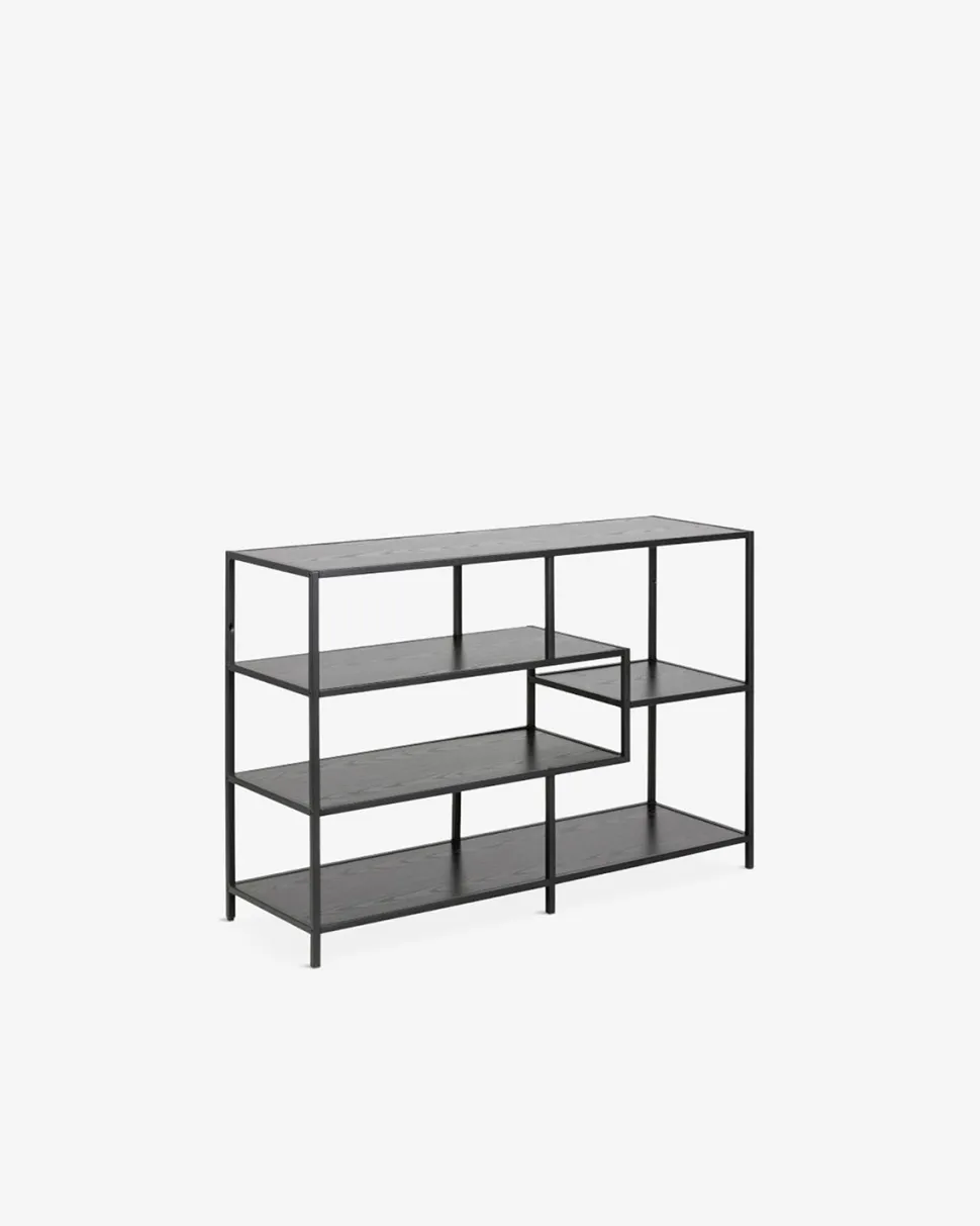 Virkelig flot og dekorativ reol i stilrent design. Hylderne er udført i sortmalet ask og stellet er sortmalet metal, hvilket giver et smukt og moderne look.