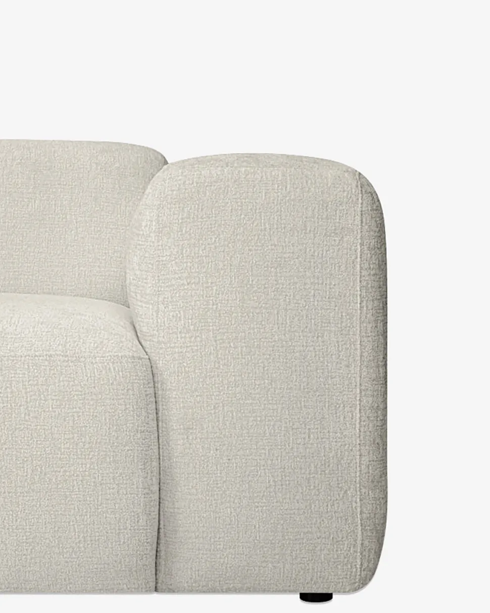 Sofaen er betrukket med det meget populære bouclé stof i en flot varm beige farve. Den lyse farve i stoffet gør netop at sofaen ikke virker så tung.