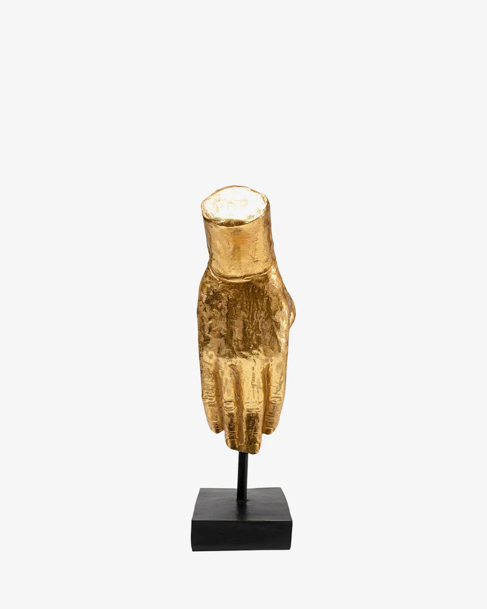 Heart Hands er en dekorativ figur, der forestiller to guldhænder, som former et hjerte med fingrene. Figuren står på en sort sokkel, som giver et elegant og stilrent modspil til den varme guldfinish og fremhæver motivets symbolske udtryk.