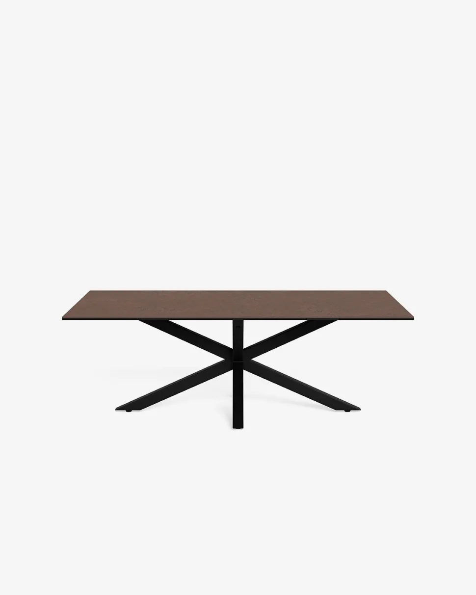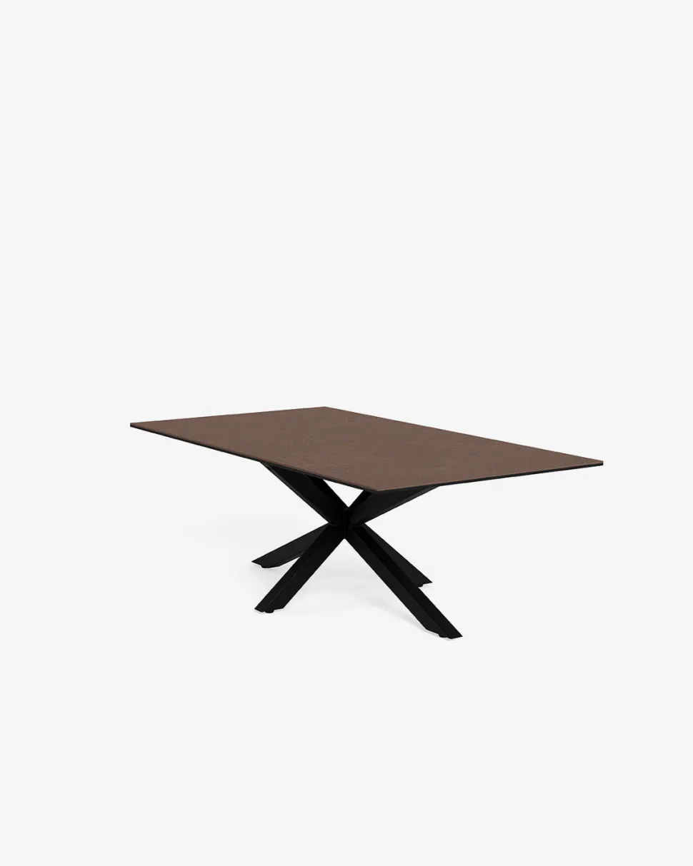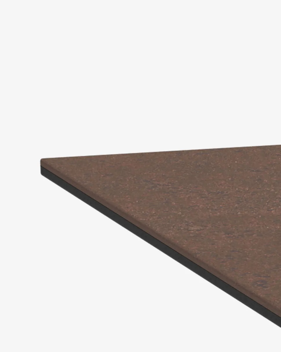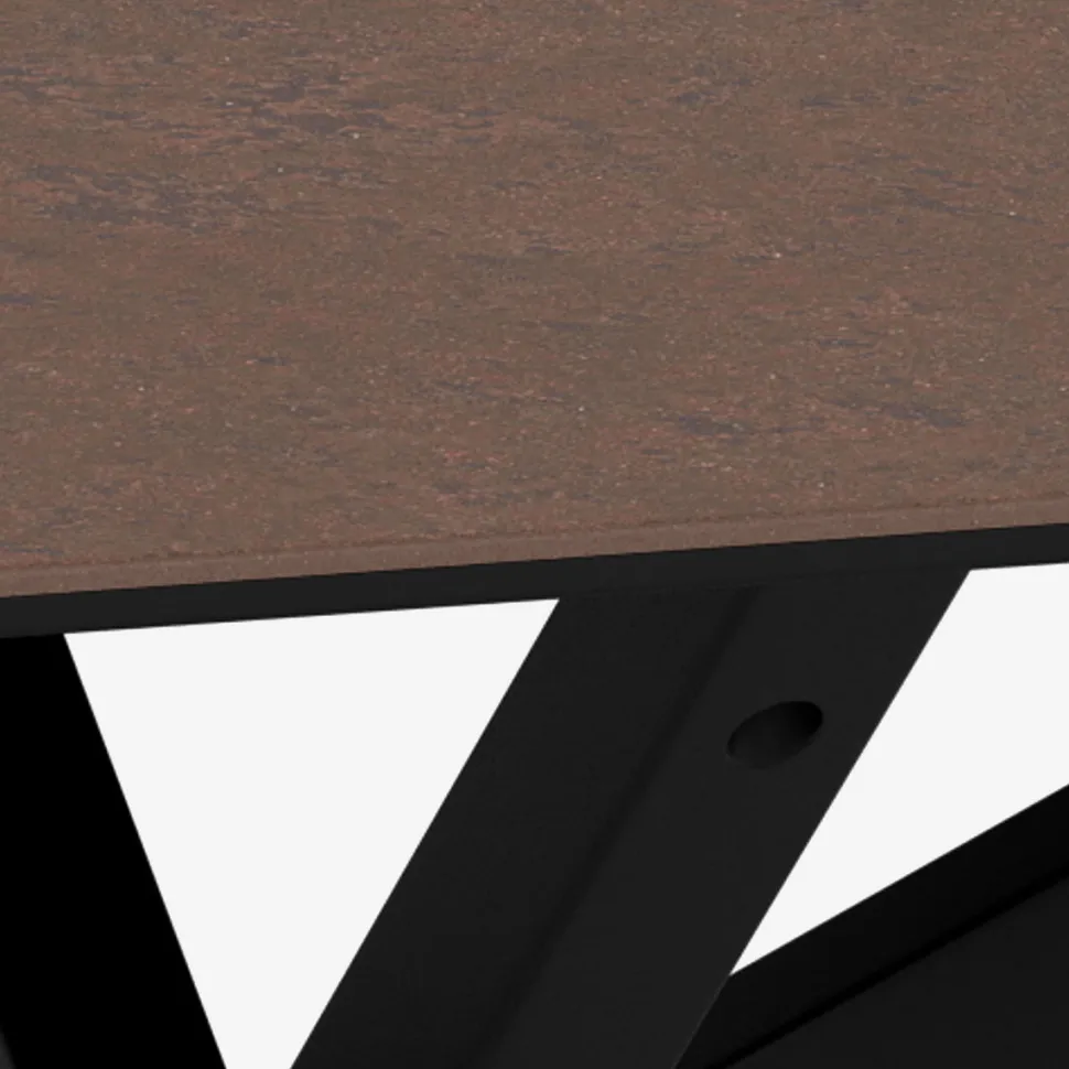 Heaven sofabord forener moderne design med robuste materialer. Den rustbrune keramiske bordplade tilfører varme og karakter til indretningen og har et naturligt stenmønster, der skaber et levende og sofistikeret udtryk. Overfladen er slidstærk, ridsefast og nem at rengøre