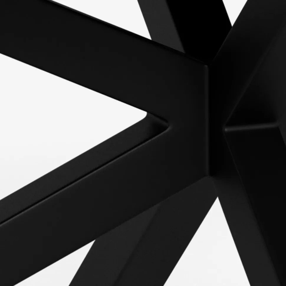 Den sorte metal stjernesokkel giver bordet en skulpturel base.